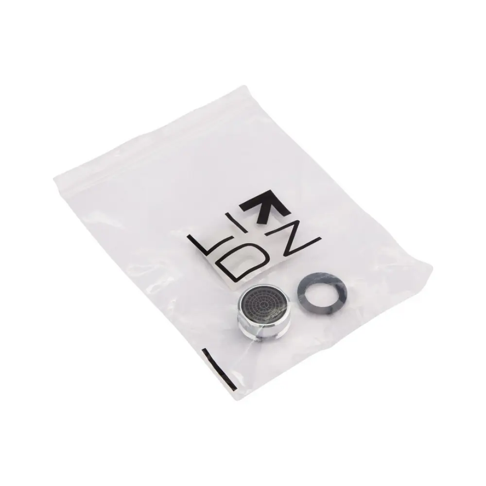 Аератор Lidz (CRM) 48 00 024 00 дозволить вам заощадити витрати води, а також зробити процес миття рук або посуду більш комфортним за рахунок зниження шуму, кількості хлору, і підвищення м‘якості струменя. Він має хромовану блискучу поверхню. За формою нагадує циліндричний сітчастий фільтр. Виріб кріпиться безпосередньо на вилив змішувача вручну без зусиль.