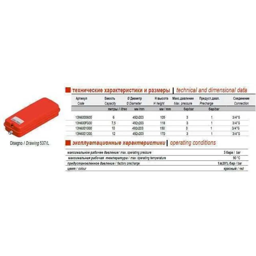 Бак Zilmet oem-pro для монтажу в котли Арт. 537 6 л 3/4 "3bar прямокутний