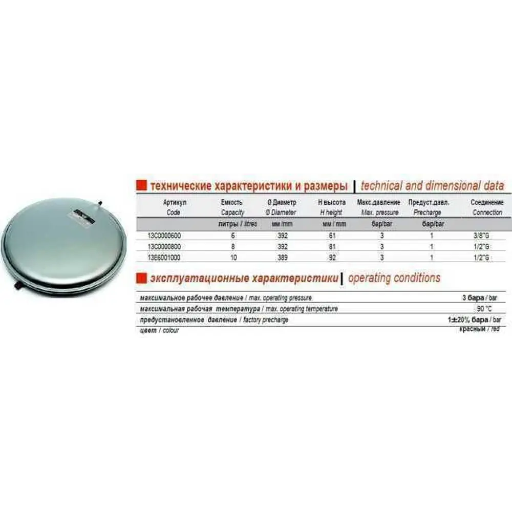 Бак Zilmet oem-pro для монтажу в котли плоский Арт. 521 6л 3bar D. 392 СІРИЙ 3/8"