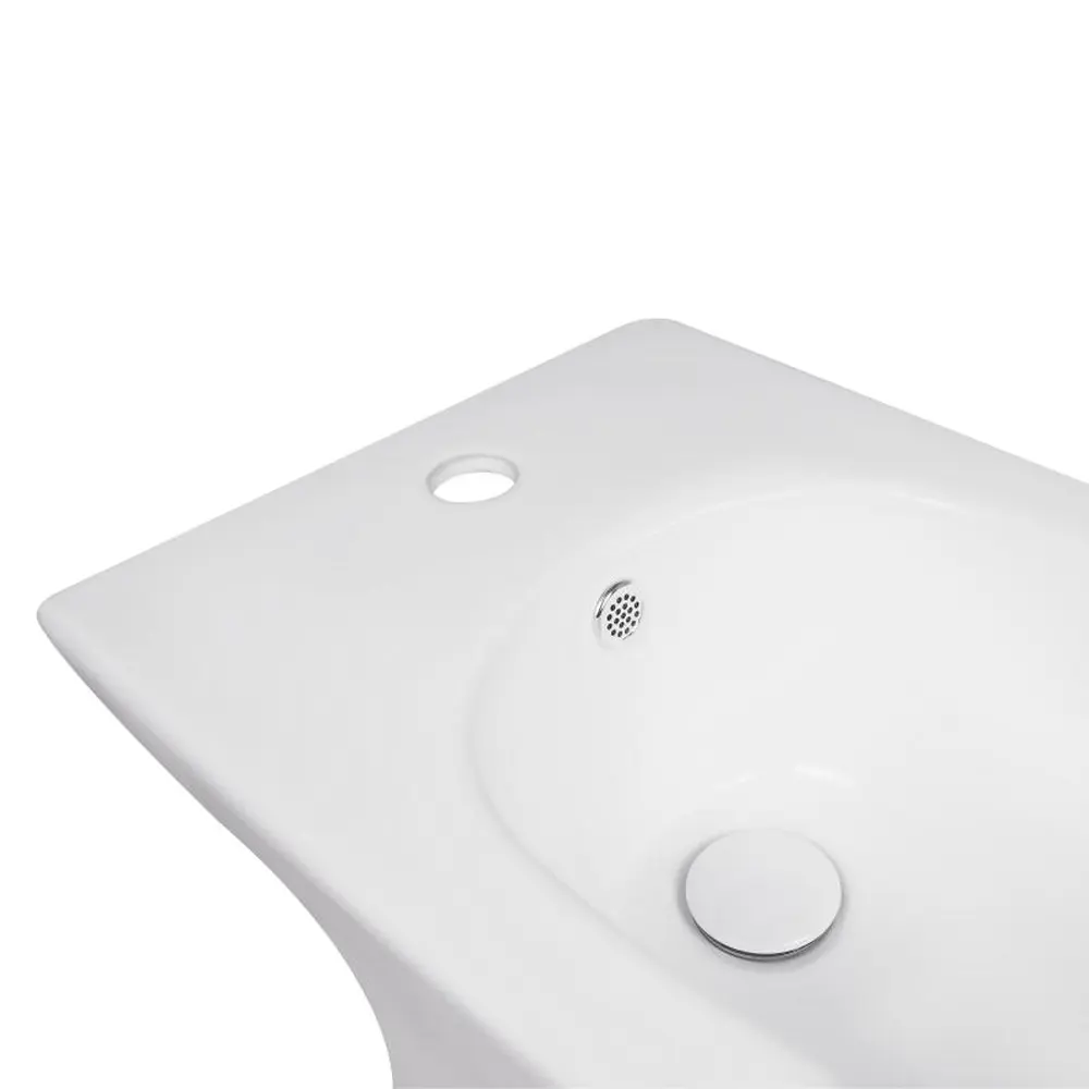 Підлогове біде Qtap Presto 540х340х400 White QT24441217C виготовлено з високоякісної кераміки білого кольору і має глянцеву поверхню з приємним блиском. Завдяки своїм формі і кольору воно прекрасно впишеться у будь-який сучасний інтер‘єр. Виріб обладнано отвором злив-перелив для запобігання переливанню води через край і отвором під змішувач, що докуповується окремо. Завдяки глянцевій поверхні прибирання буде здійснюватися швидше і більш зручно.