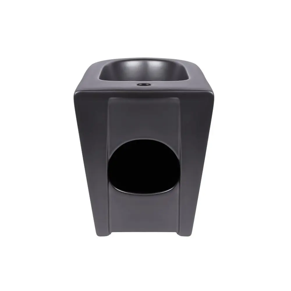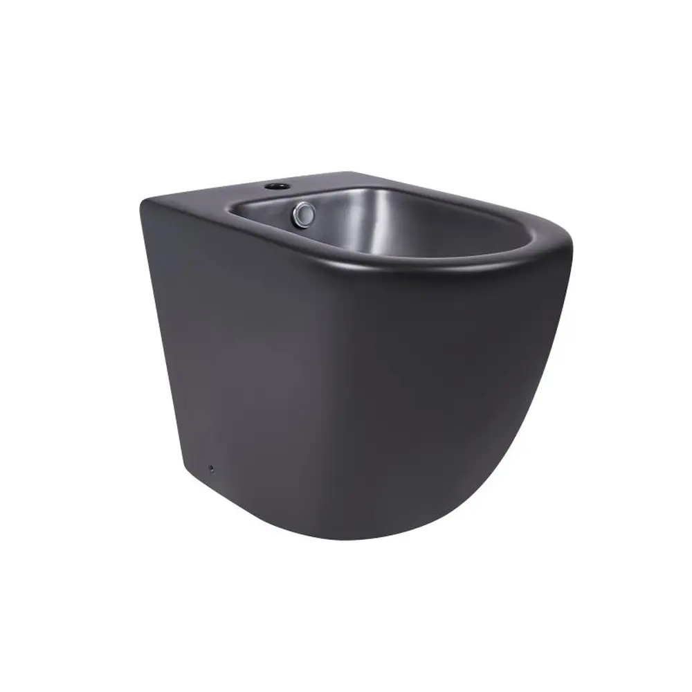 Підлогове біде Qtap Robin 565x360x405 Matt black QT13442141CMB виготовлене з високоякісної кераміки чорного кольору і має матову поверхню. Завдяки своїй формі та кольору воно чудово впишеться у будь-який сучасний інтер‘єр. Виріб обладнано отвором злив-перелив для запобігання переливанню води через край та отвором під змішувач. Донний клапан та змішувач до комплектації не входить.