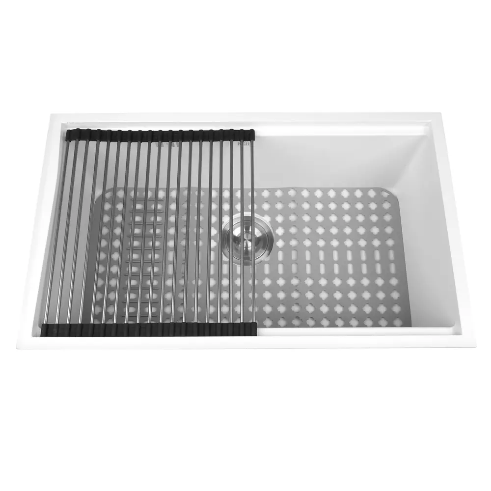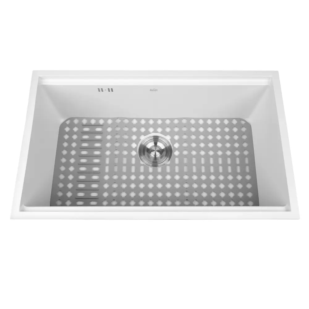 Елегантна біла раковина виготовлена з високоякісної нержавіючої сталі AISI 304, що забезпечує надійність та тривалий термін служби виробу.