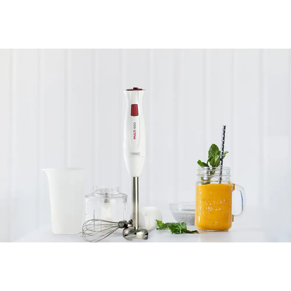 Ручной блендер KSHB 610 W - это современный и функциональный прибор, который обязательно облегчит Вам работу на кухне. Двигатель мощностью 600 Вт и 10 режимов работы помогут вам легко и быстро приготовить любимые блюда. Устройство может работать в контакте с горячими жидкостями благодаря ножке из нержавеющей стали. Ручной блендер оснащен такими аксессуарами, как чаша для смешивания, измельчитель и венчик. Он удобен и практичен, изготовлен из высококачественных материалов. Бесспорно, он удовлетворит все потребности хозяек своей функциональностью и эргономичной формой.