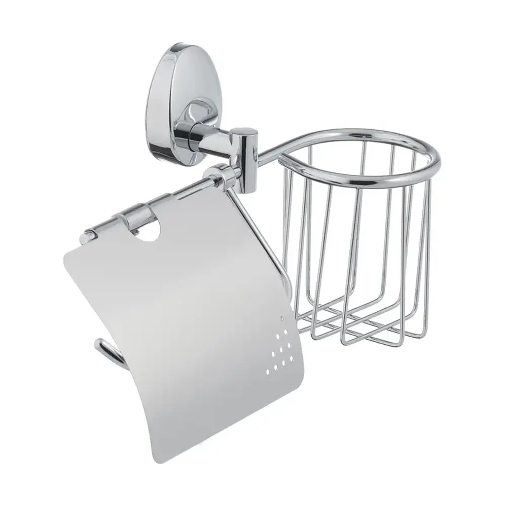 Практичний і надійний паперотримач. Металевий корпус виглядає міцним, а дизайн з кошиком дуже зручний – усе необхідне завжди під рукою. Хромоване покриття стійке до вологи, що особливо важливо у ванній кімнаті.