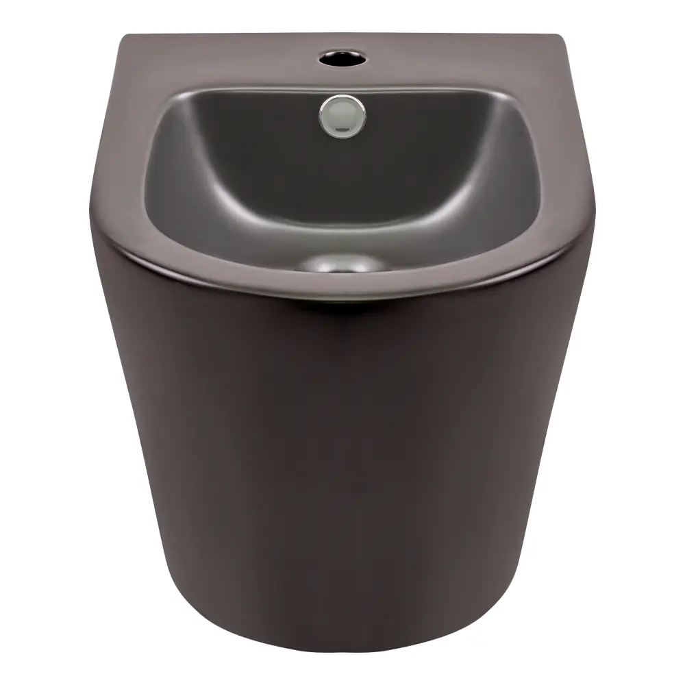Біде підвісне Qtap Scorpio QT1455053FMB виготовлено з високоякісної кераміки з матовою чорною поверхнею. Завдяки своїм формі і кольору воно стане яскравим акцентом будь-якого санвузла. Виріб обладнано отвором злив-перелив для запобігання переливання води через край і отвором під змішувач. Підвісний монтаж дозволяє заощадити місце в приміщенні і зробити прибирання швидше і простіше.