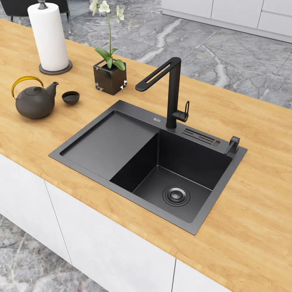 Чорна кухонна мийка з вишуканим дизайном принесе вишуканий шарм до ансамблю будь-якої кухні.