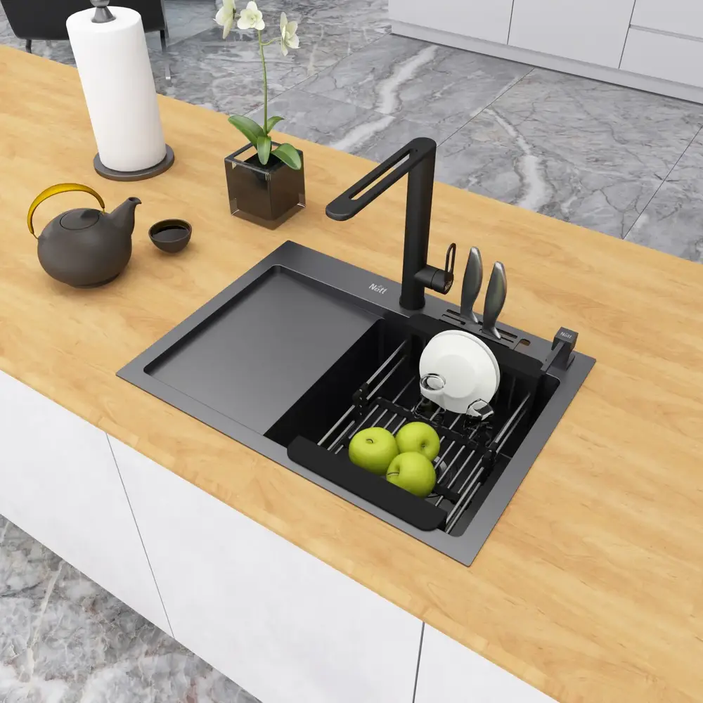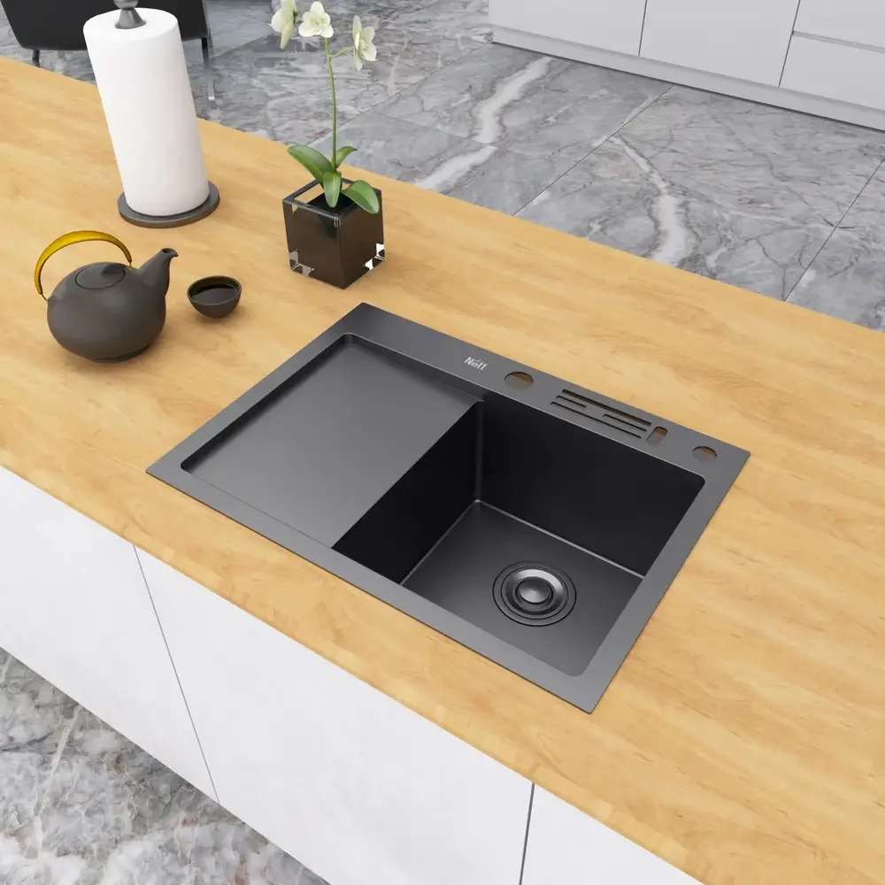 Елегантна чорна мийка укомплектована спеціалізованим Nano покриттям, яке підвищує її стійкість до подряпин та інших механічних пошкоджень. PVD покриття також ефективно протистоїть корозії.