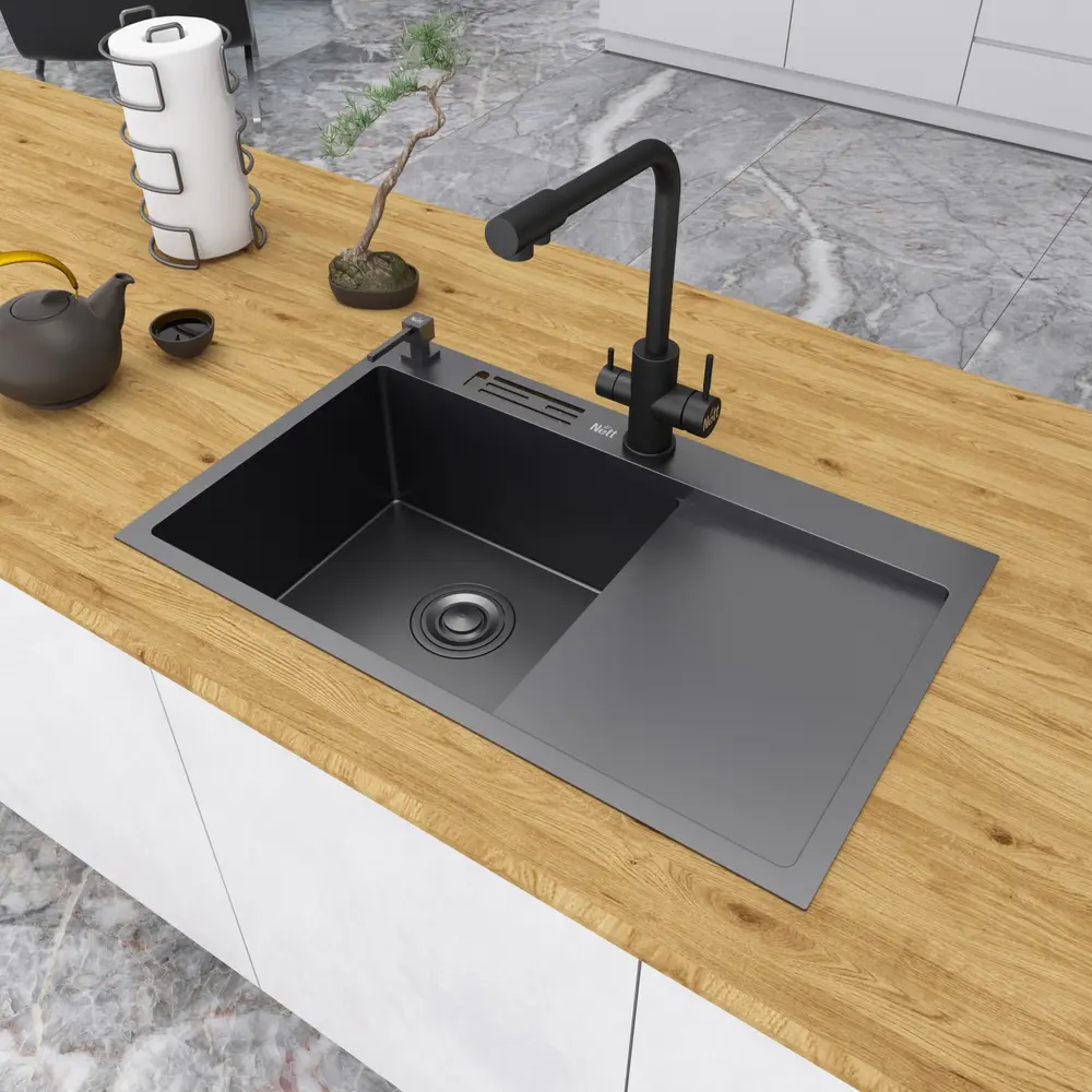 Чорна кухонна мийка з вишуканим дизайном принесе вишуканий шарм до ансамблю будь-якої кухні.