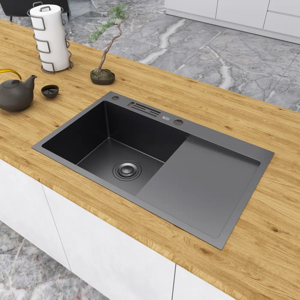 Елегантна чорна мийка укомплектована спеціалізованим Nano покриттям, яке підвищує її стійкість до подряпин та інших механічних пошкоджень. PVD покриття також ефективно протистоїть корозії.