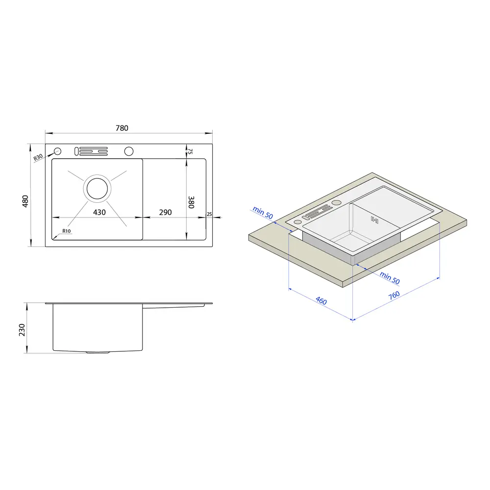 Мийка виготовлена з преміальної сталі AISI 304, що відрізняється підвищеним вмістом хрому та нікелю в порівнянні з AISI 204, що гарантує їй видатну продуктивність у використанні.