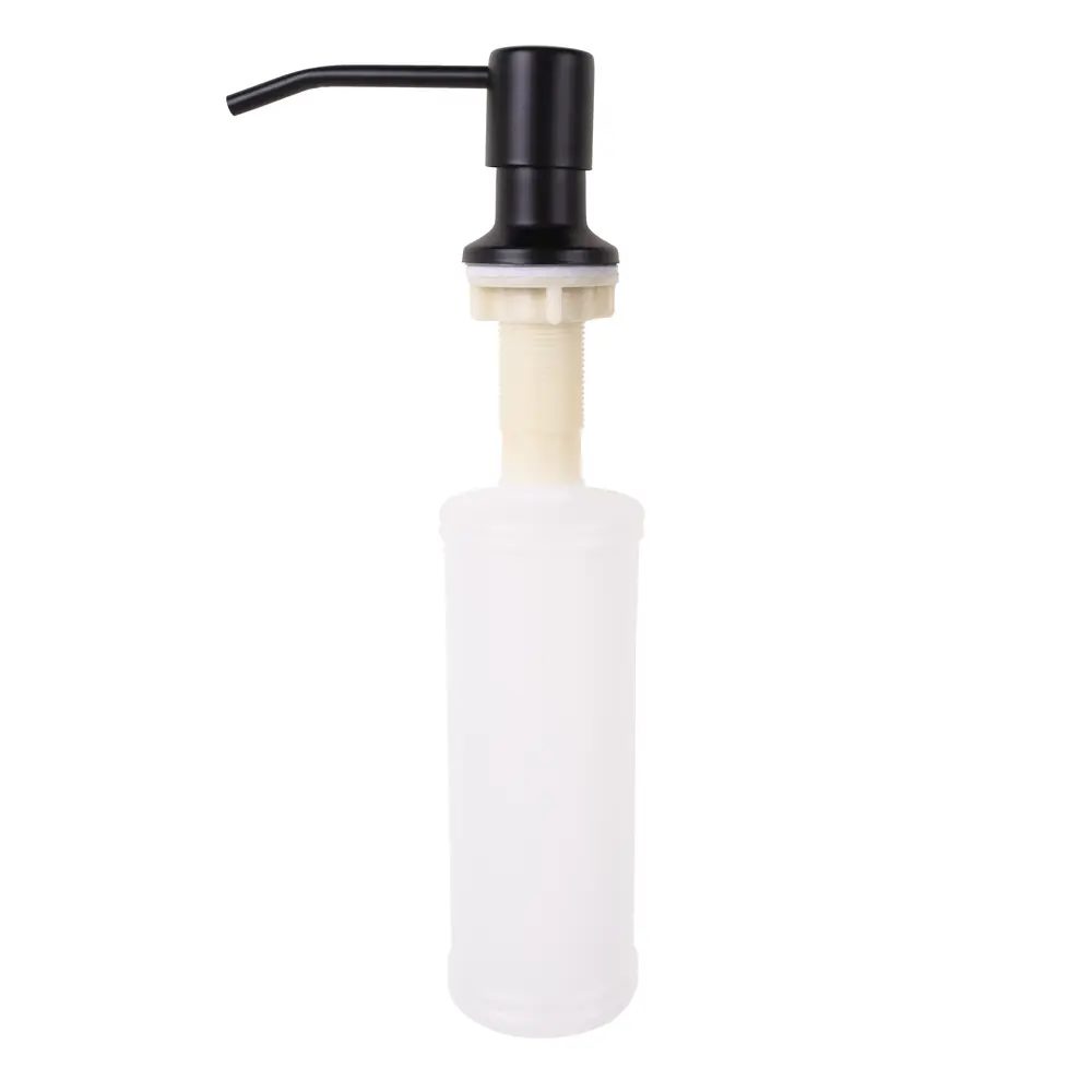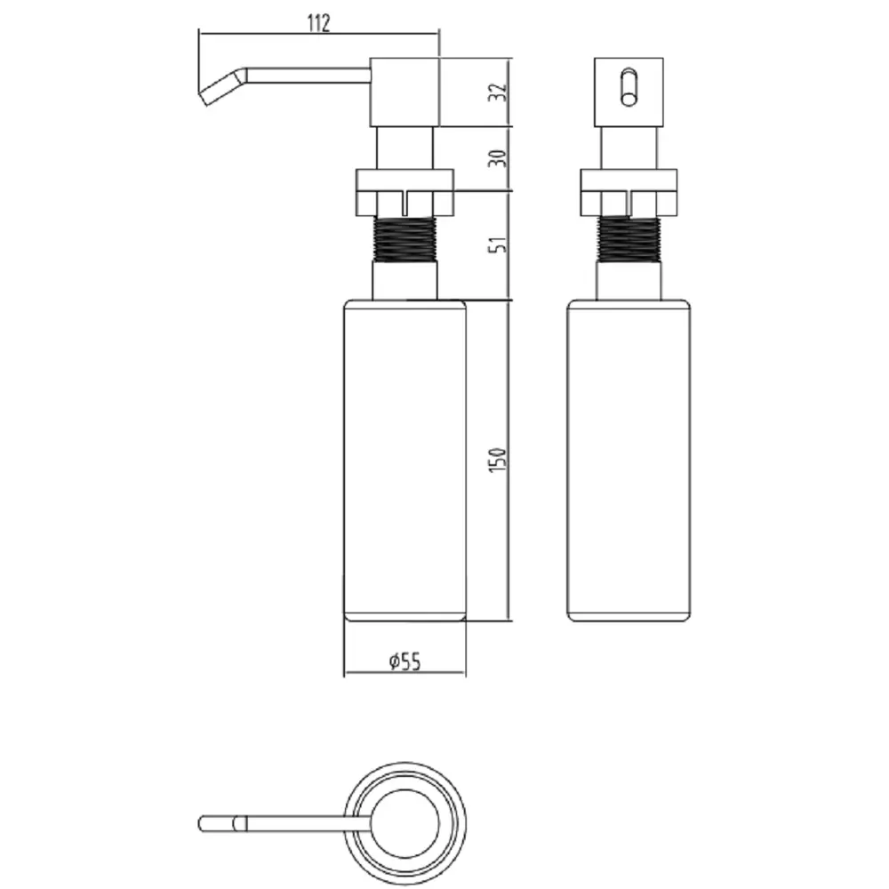 Дозатор для миючого засобу Nett встановлюється на кухонну мийку або на стільницю, діаметр отвору 30мм, і дозволяє звільнити простір поруч з мийкою від ємностей з миючими засобами. Головка дозатора виконана з нержавіючої сталі 304 марки з чорним покриттям.