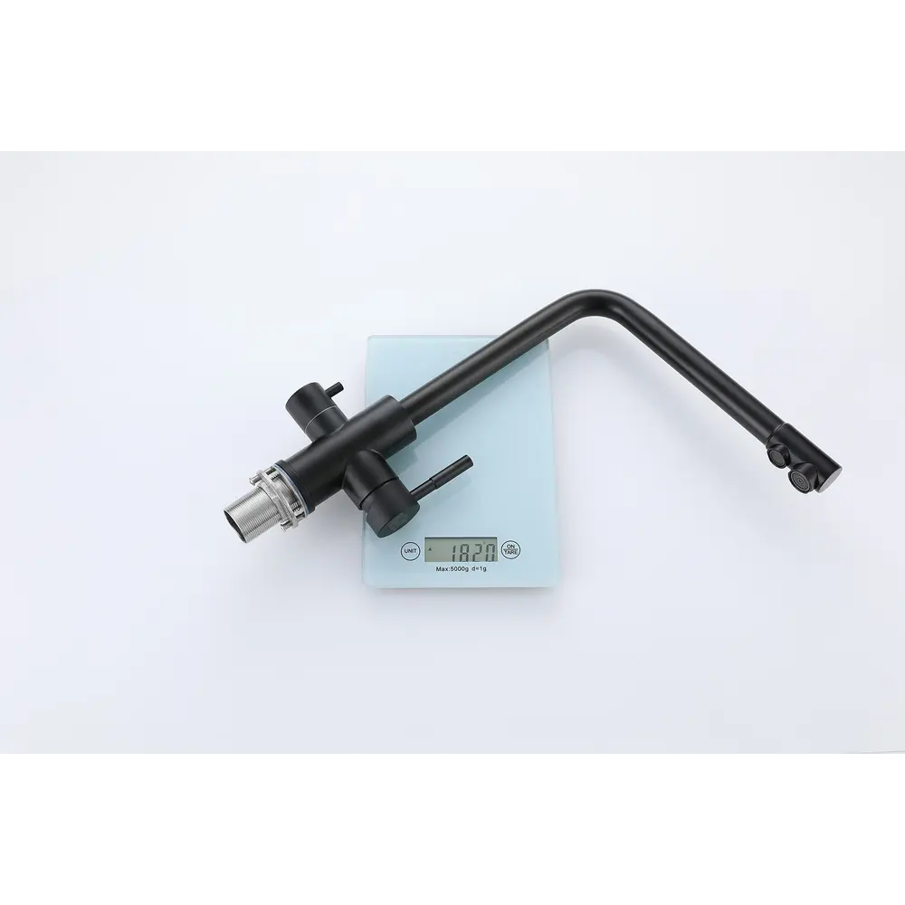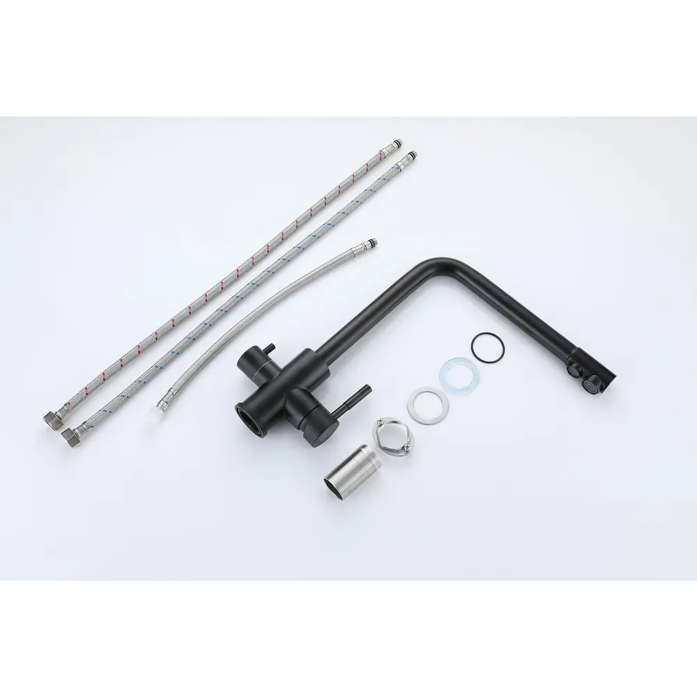Всі компоненти змішувача мають елегантне чорне покриття, що дозволяє йому гармонійно вписатися в інтер’єр кухні з будь-яким дизайном.