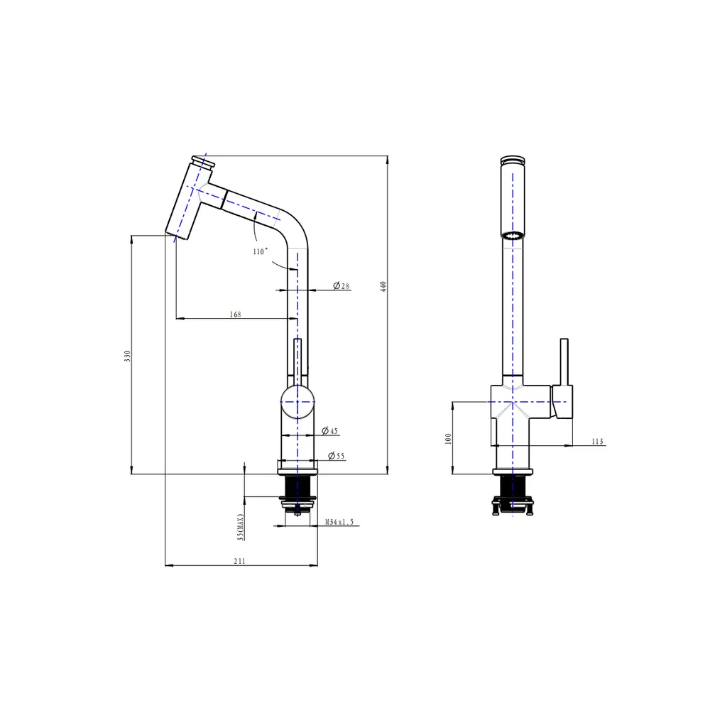 Змішувач оснащений висувною лійкою, яка обертається на 360˚ і забезпечує доступ до води в будь-якому кутку мийки.