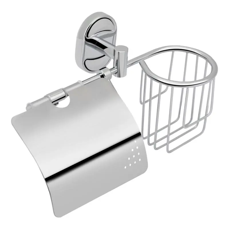 Практичний і надійний паперотримач. Металевий корпус виглядає міцним, а дизайн з кошиком дуже зручний – усе необхідне завжди під рукою. Хромоване покриття стійке до вологи, що особливо важливо у ванній кімнаті.