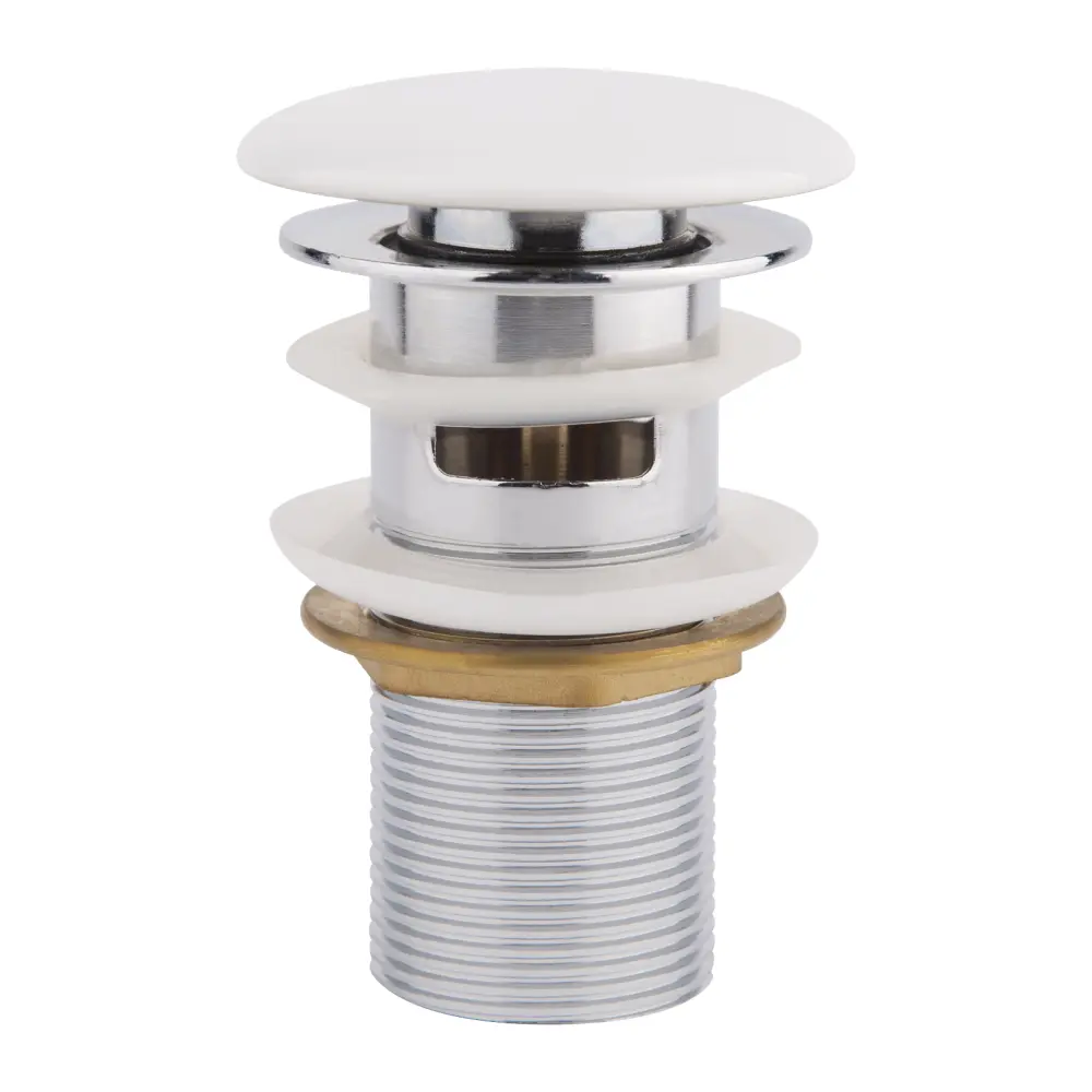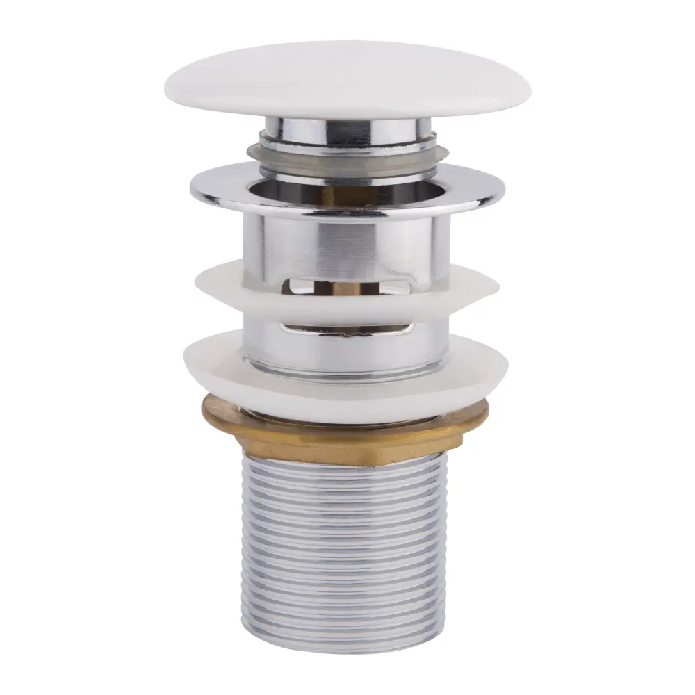 Донный клапан Qtap WHI F0081 выполнен из латунной фурнитурой хромированного цвета и белой керамической крышкой с приятным блеском, которая будет привлекательно выглядеть на дне раковины такого же покрытия. Изделие позволит перекрыть сливное отверстие в случае необходимости и использовать раковину как таз, а наличие перелива убережет вас от потопа, если вы ненадолго отвлеклись во время набора воды. Клапан быстро монтируется и просто управляется. Соединение универсальное со стандартным шагом резьбы.