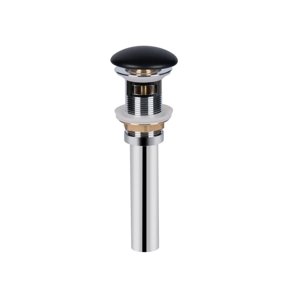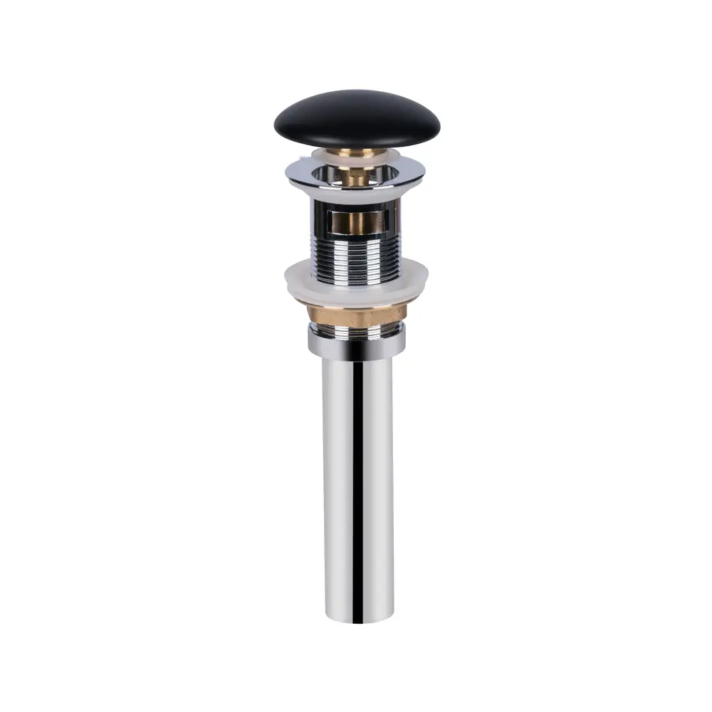 Донний клапан для раковини Qtap PU03O MATT BLACK виконаний з чорною матовою кришкою з кераміки і фурнітури з латуні в хромованому кольорі, що дає можливість поєднувати його з раковинами з таким же покриттям. Виріб дозволить перекрити зливний отвір в разі потреби і використовувати раковину як таз, а наявність переливу вбереже вас від потопу, якщо ви ненадовго відволіклися під час набирання води. З‘єднання універсальне зі стандартним кроком різьби підійде під будь-який сифон.
