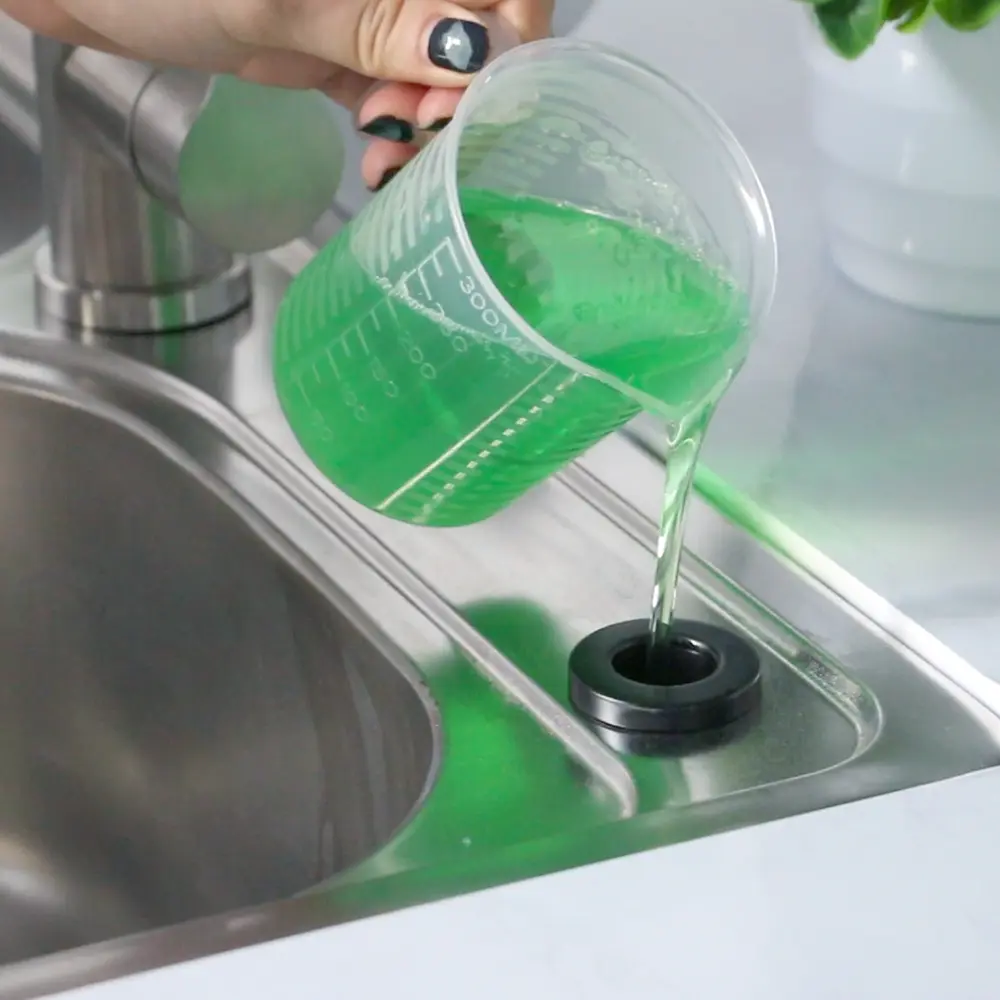 Рідке мило заливається зверху, через зйомну насадку без від'єднання ємності. Для промивання ємності дозатора всього лише потрібно заповнити його водою і прокачати носиком.