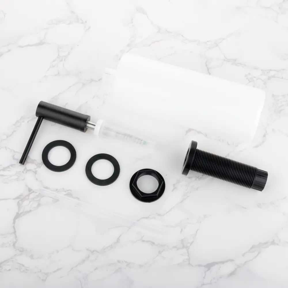 Дозатор для миючого засобу Nett встановлюється на кухонну мийку або на стільницю, діаметр отвору 30 мм, і дозволяє звільнити простір поруч з мийкою від ємностей з миючими засобами. Головка дозатора виконаний з нержавіючої сталі 304 марки з чорним матовим покриттям.