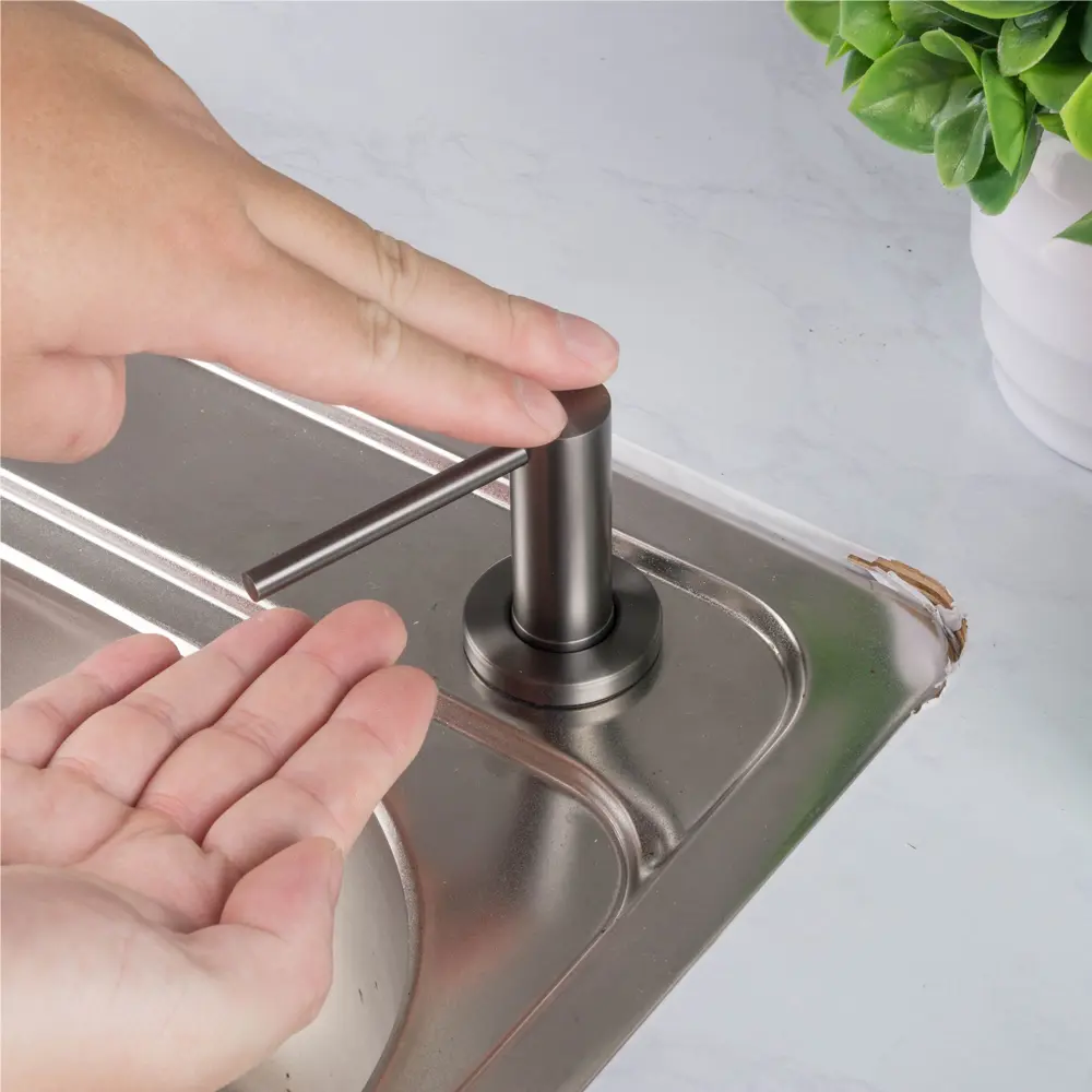 Дозатор для миючого засобу Nett встановлюється на кухонну мийку або на стільницю, діаметр отвору 30 мм, і дозволяє звільнити простір поруч з мийкою від ємностей з миючими засобами. Головка дозатора виконаний з нержавіючої сталі 304 марки з графітовим покриттям.