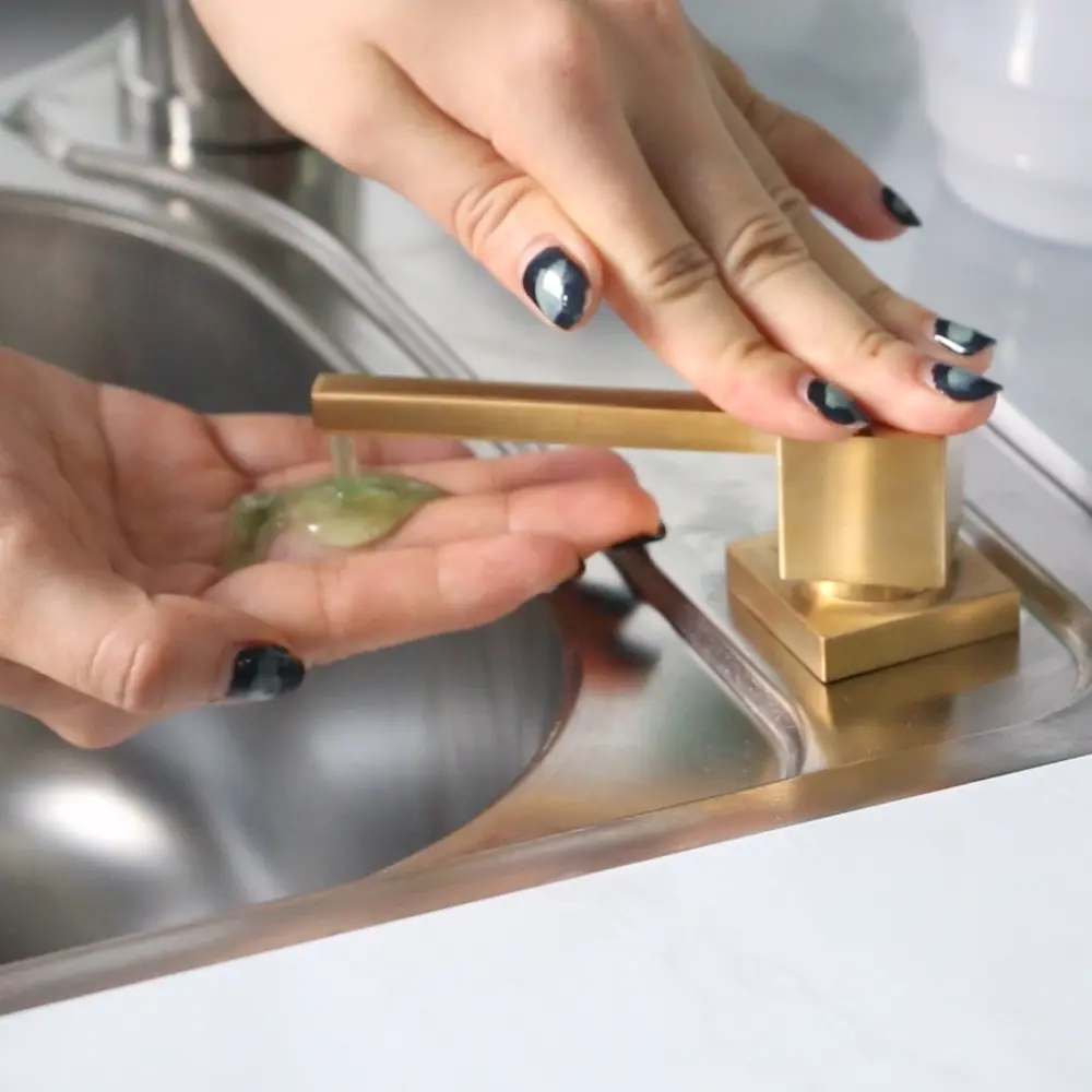 Дозатор виглядає дуже ефектно на стільниці — золото додає шику кухні. Зручний у використанні, резервуар достатньо великий, щоб не доливати щотижня. Приємно, що врізний — нічого зайвого не стоїть на поверхні. Однозначно рекомендую.