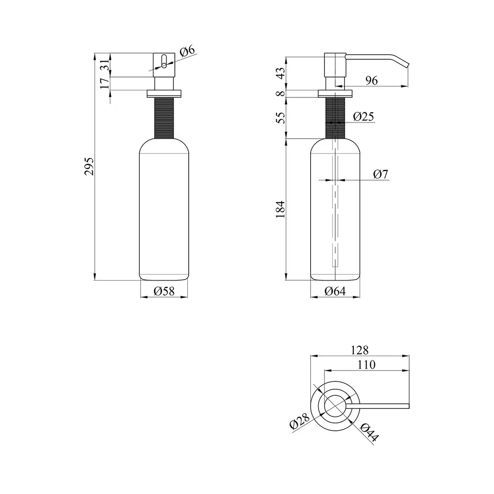 Встраиваемый дозатор Kroner KRP Spender-C012 станет универсальной изюминкой в интерьере современной кухни или и ванной комнаты. Диспенсер — это незаменимый аксессуар, который выполняет несколько функций. Во-первых, экономия расхода моющего средства или жидкого мыла. Во-вторых, избавляет от визуального шума. При монтаже встраиваемый аксессуар фиксируют в отверстии столешницы или мойки таким образом, чтобы пластиковая емкость была скрыта внутри, что придает пространству аккуратный вид. Благодаря прозрачным стенкам удобно контролировать расход моющего средства. Он состоит из пластиковой емкости 500 мл, и помпы - из высококачественной латуни с хромированным покрытием, которая ее герметично закрывает. Оснащен системой подачи моющего средства с дополнительным каналом, исключающим контакт жидкости с латунными деталями. Аксессуар обладает повышенной прочностью, устойчив к агрессивному воздействию внешней среды и рассчитан на длительную эксплуатацию. Максимальная толщина столешницы 50 мм. Диаметр отверстия для установки 25 мм.