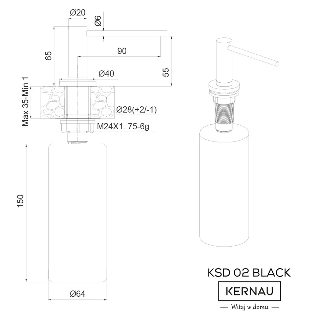 Дозатор рідини для миття посуду KERNAU KSD 02 висотою 280 мм і діапазоном носика 90 мм доступний у двох кольорах. Його ємність становить 500 мл і є можливість доливання. Його можна встановити як в мийці, так і на кухонній стільниці. Максимальна товщина верху - 35 мм. Диспенсер прекрасно виконує свою роботу. Це зручність і комфорт користування, а також значна економія місця на робочому столі. Через велику ємність додавати рідину не доведеться дуже часто.