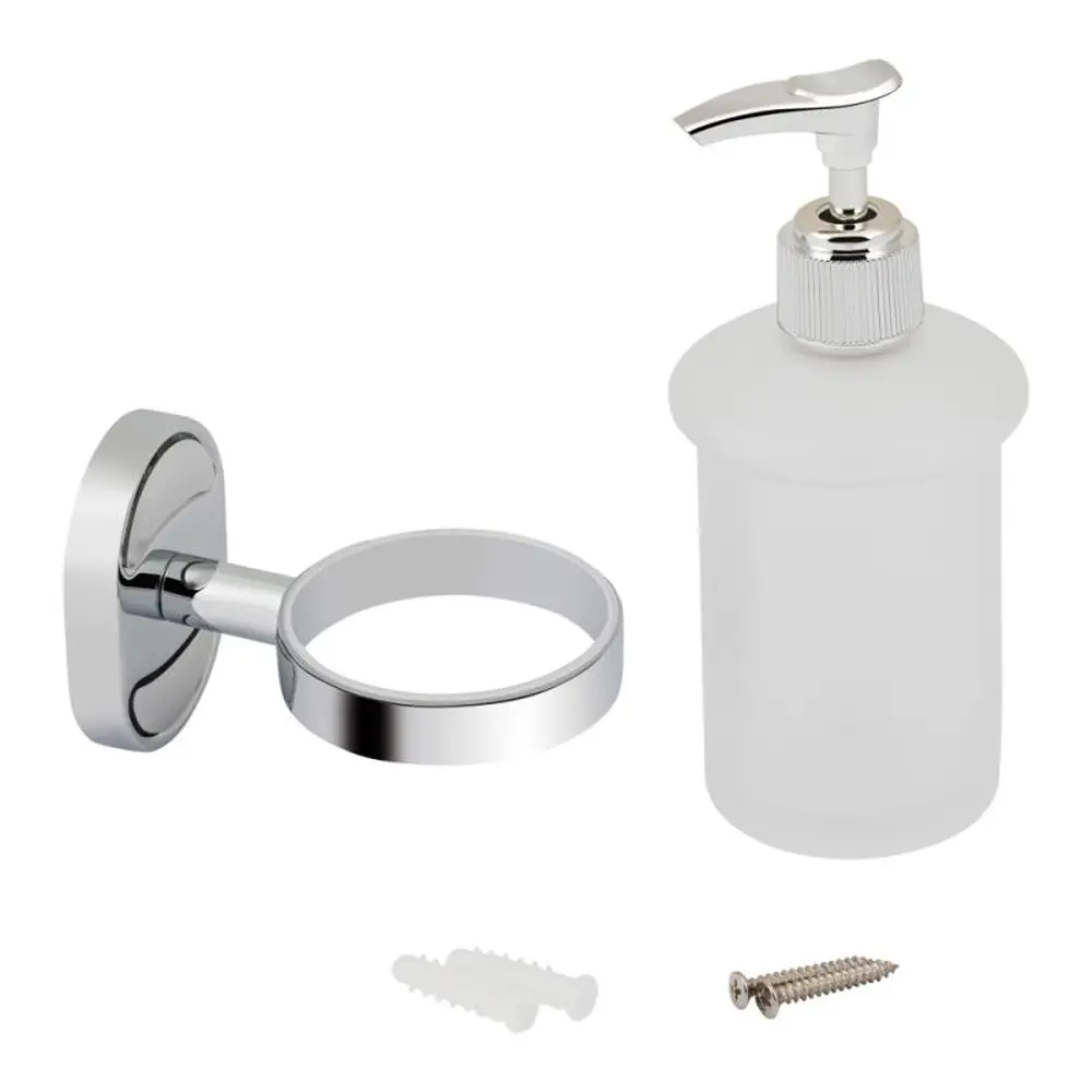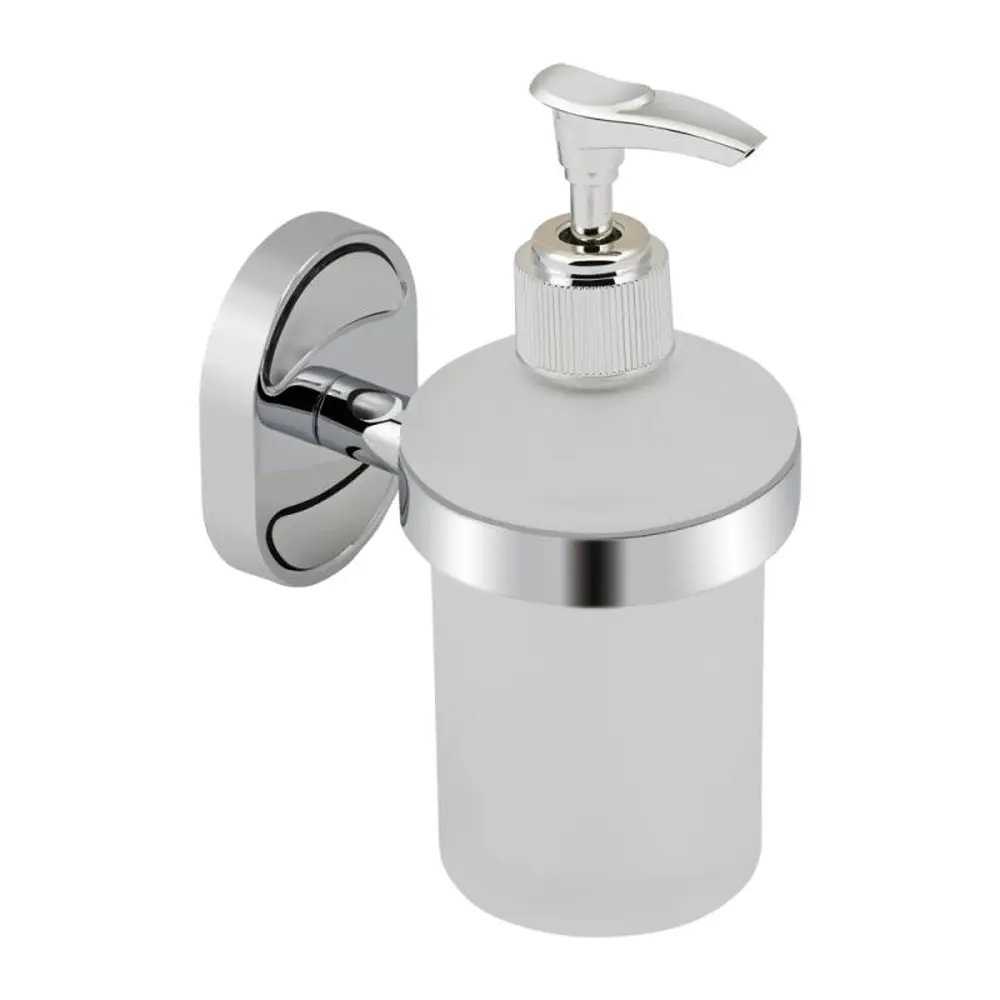 Дозатор для рідкого мила Lidz (CRM) 114.02.02 кріпиться на стіну, не піддається корозії. Колба з матового скла знімна, завдяки чому догляд за ним буде простим і легким. У виробі використовуються кільця ущільнювачів (прокладки), необхідні для щільного з‘єднання металу і кераміки, які також перешкоджають виникненню шуму в результаті зіткнення частин виробу.
