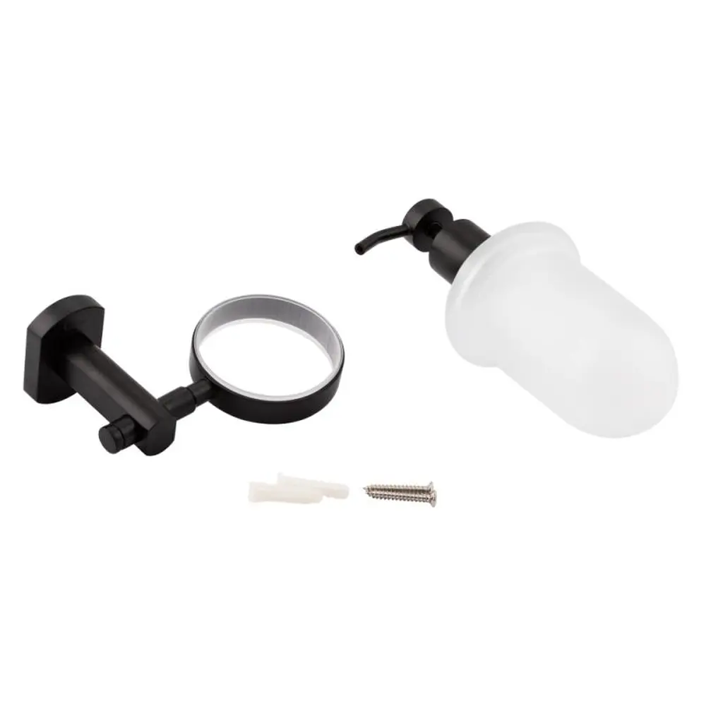 Дозатор для рідкого мила Qtap Liberty BLM 1152 робить процес миття рук гігієнічним і швидким. Латунний тримач дозатора у вигляді кронштейна з кільцем має антикорозійні властивості і кріпиться на стіну. Пляшка виконана з матового скла. Дизайн дозатора підходить за дизайном до інших аксесуарів такого ж кольору, чудово доповнить невеликі санвузли і, завдяки своїм розмірам, може кріпитися в будь-якому зручному та доступному місці. Не займає місце на раковині.