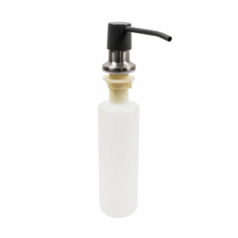 Це рішення для тих, хто хоче уникнути пляшок і флаконів біля мийки. Врізні дозатори монтуються безпосередньо в отвір кухонної мийки або стільниці, поруч зі змішувачем. Їх основні переваги:
