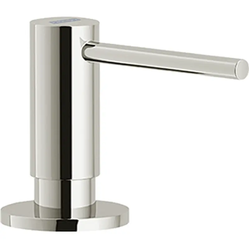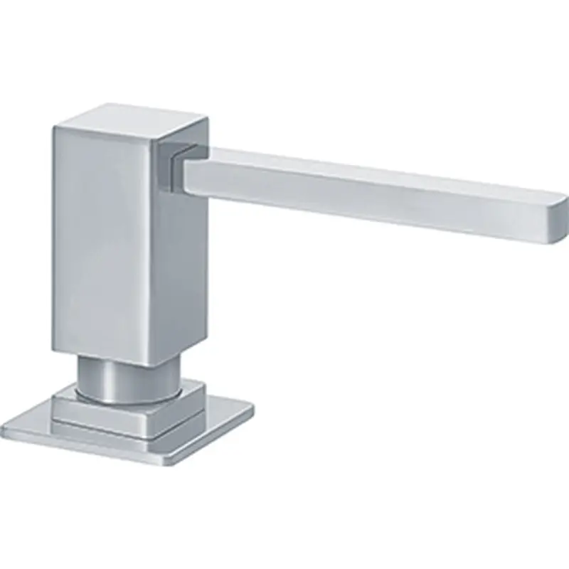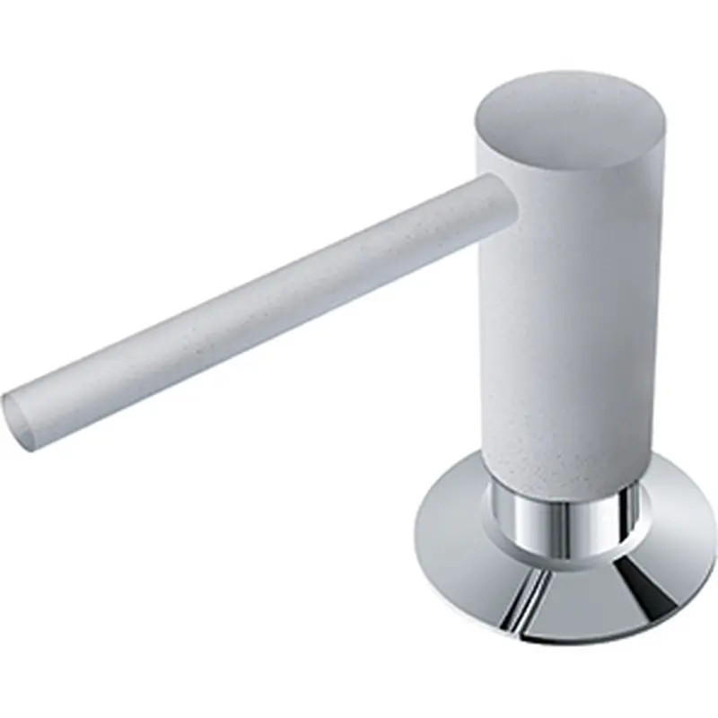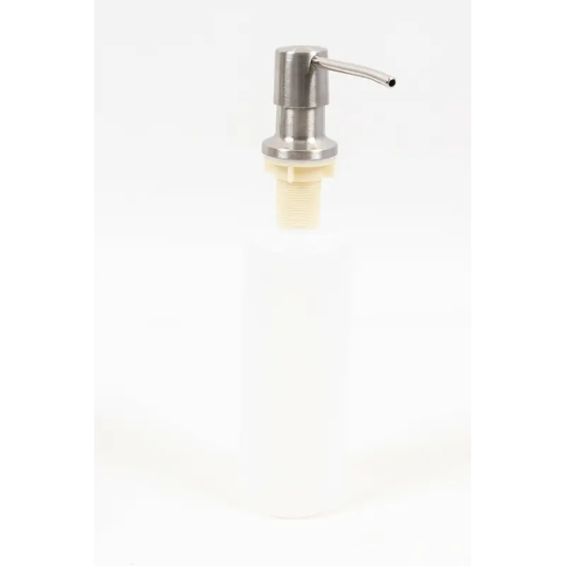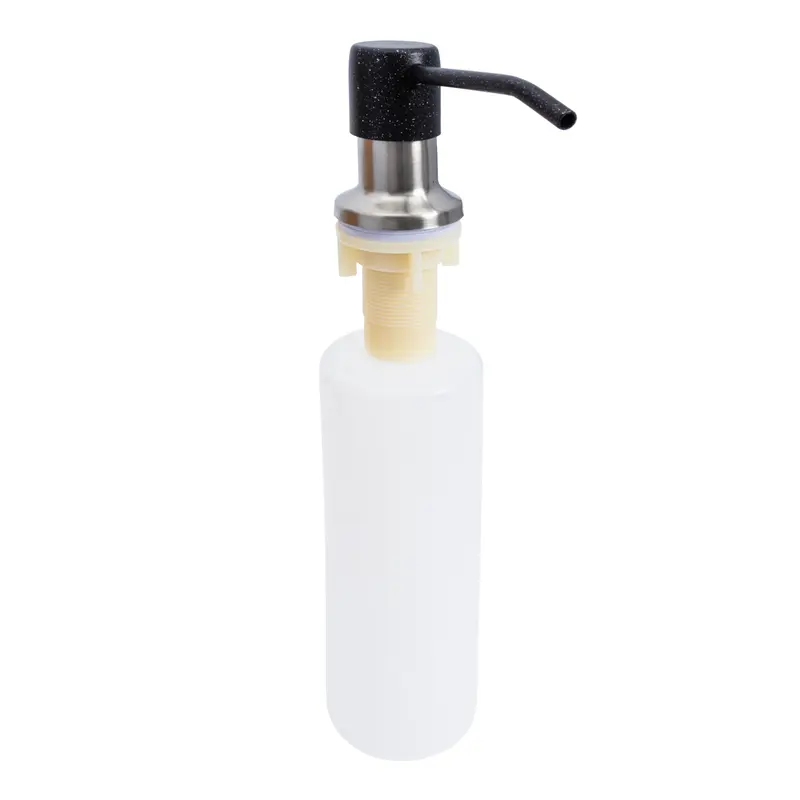 Це рішення для тих, хто хоче уникнути пляшок і флаконів біля мийки. Врізні дозатори монтуються безпосередньо в отвір кухонної мийки або стільниці, поруч зі змішувачем. Їх основні переваги: