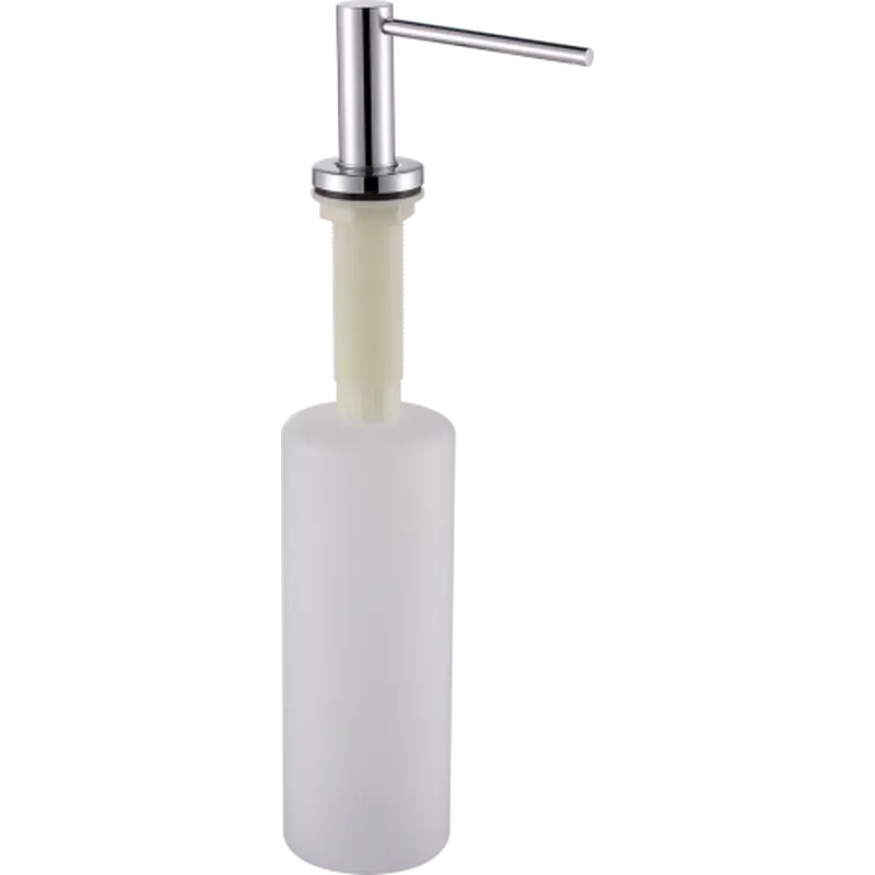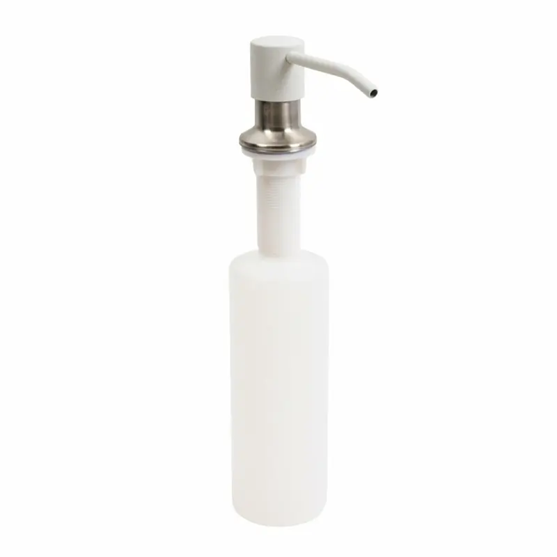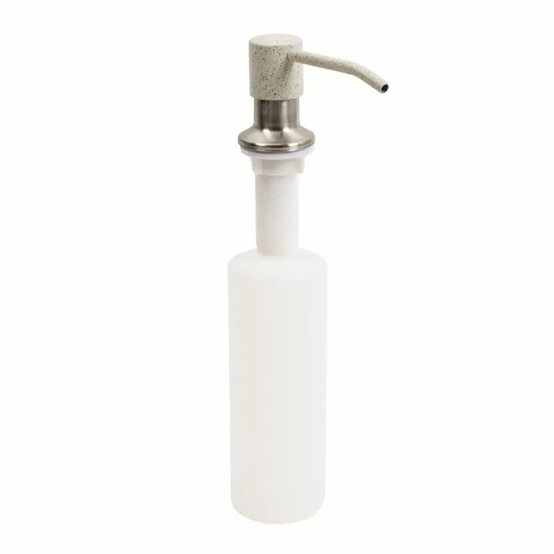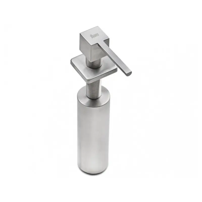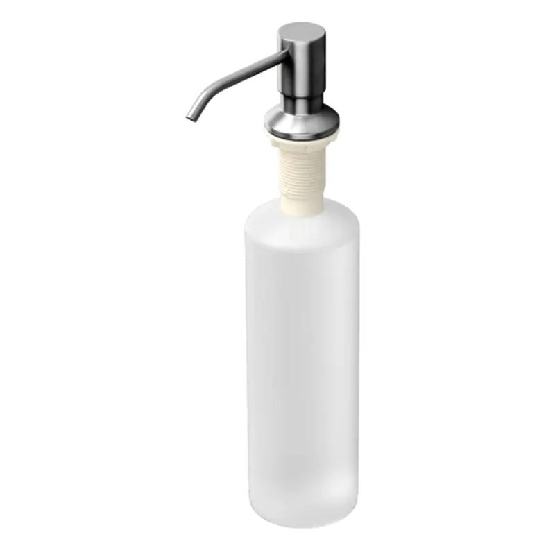 Це рішення для тих, хто хоче уникнути пляшок і флаконів біля мийки. Врізні дозатори монтуються безпосередньо в отвір кухонної мийки або стільниці, поруч зі змішувачем. Їх основні переваги: