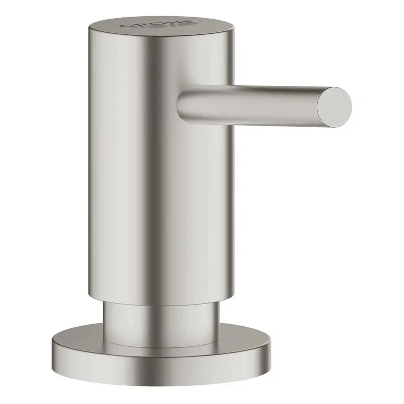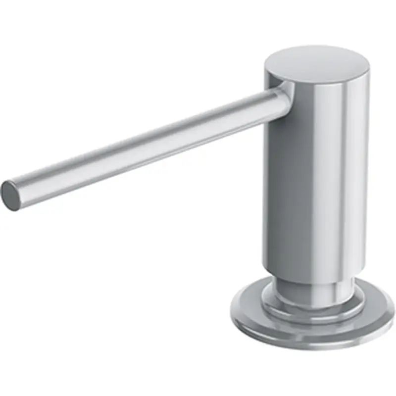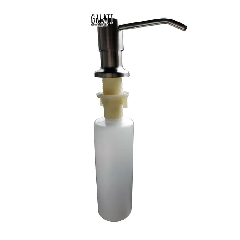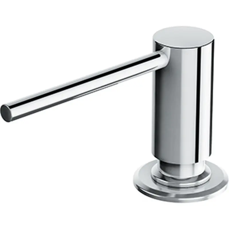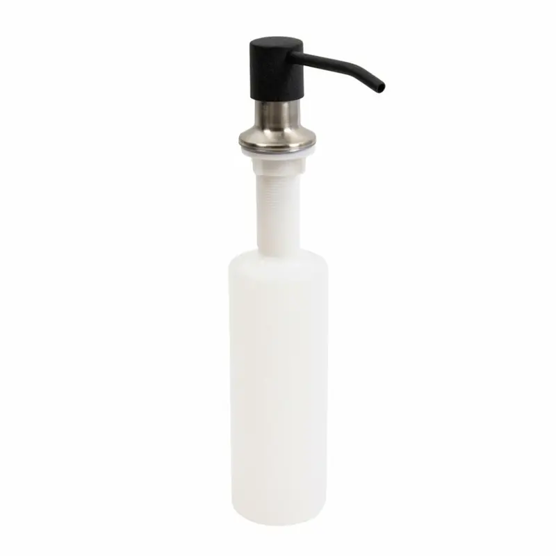 Це рішення для тих, хто хоче уникнути пляшок і флаконів біля мийки. Врізні дозатори монтуються безпосередньо в отвір кухонної мийки або стільниці, поруч зі змішувачем. Їх основні переваги:
