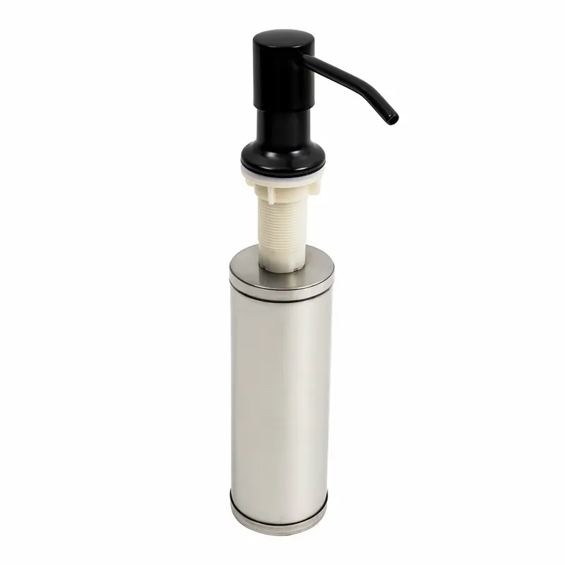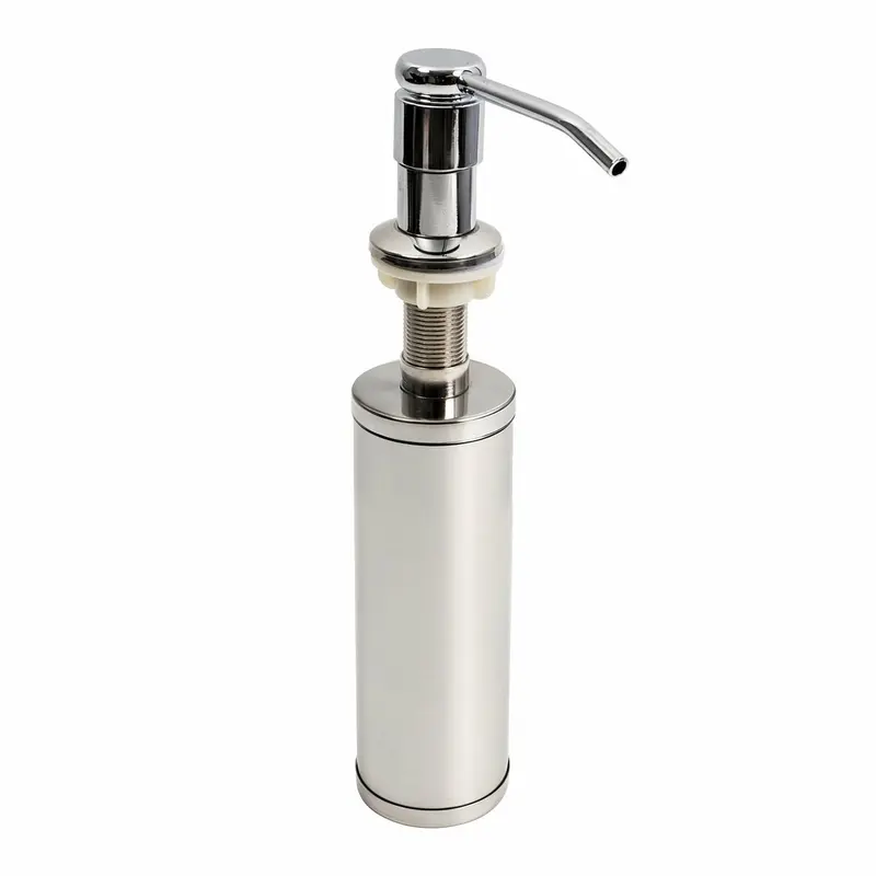 Это решение для тех, кто хочет избежать бутылок и флаконов у мойки. Врезные дозаторы монтируются непосредственно в отверстие кухонной мойки или столешницы рядом со смесителем. Их основные преимущества: