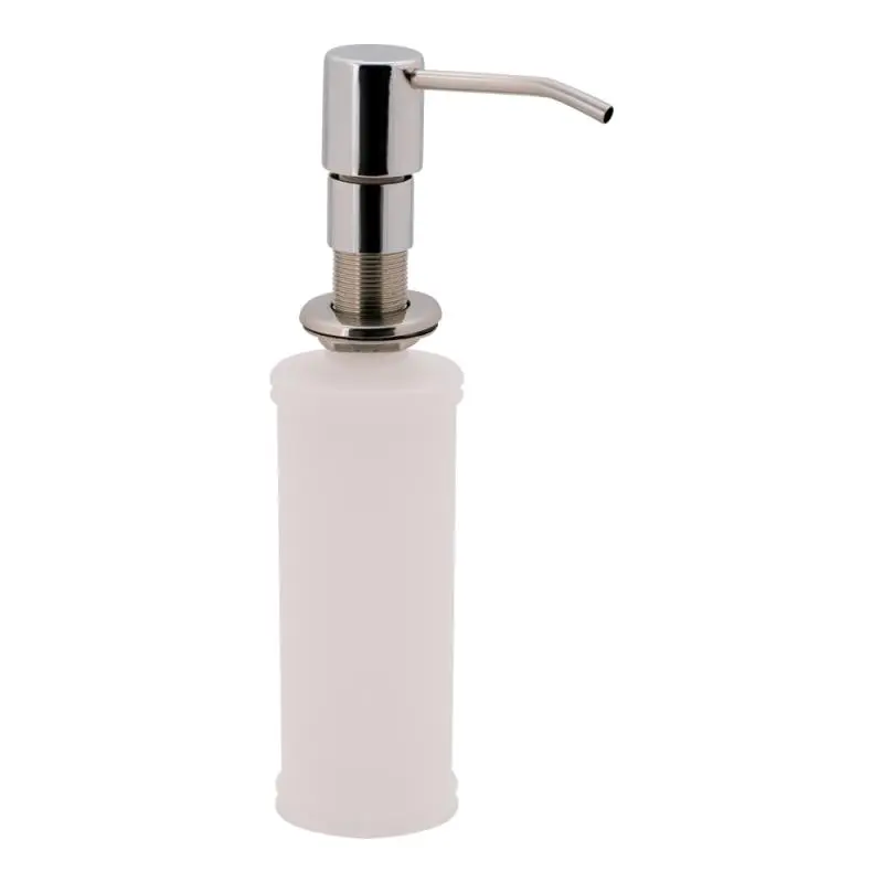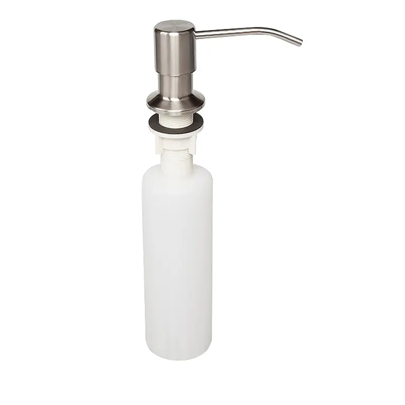 Это решение для тех, кто хочет избежать бутылок и флаконов у мойки. Врезные дозаторы монтируются непосредственно в отверстие кухонной мойки или столешницы рядом со смесителем. Их основные преимущества: