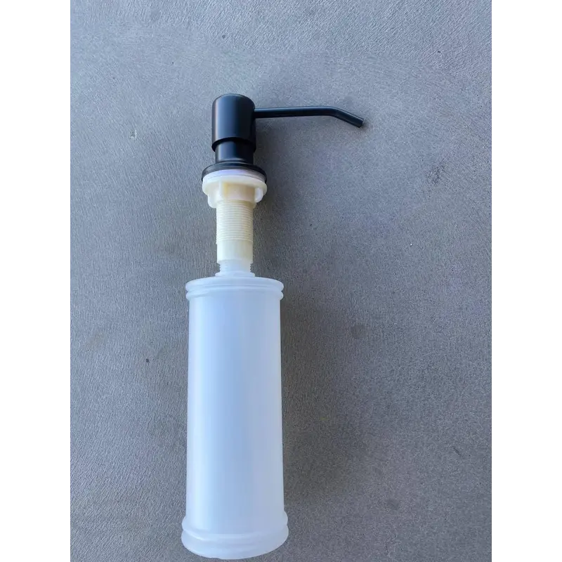 Недорогий дозатор для миючого ідеально до нержавіючих мийок. Ємність 300 мл. Зверху нерж.сталь колба пластикова. Працює місяць. Все добре.