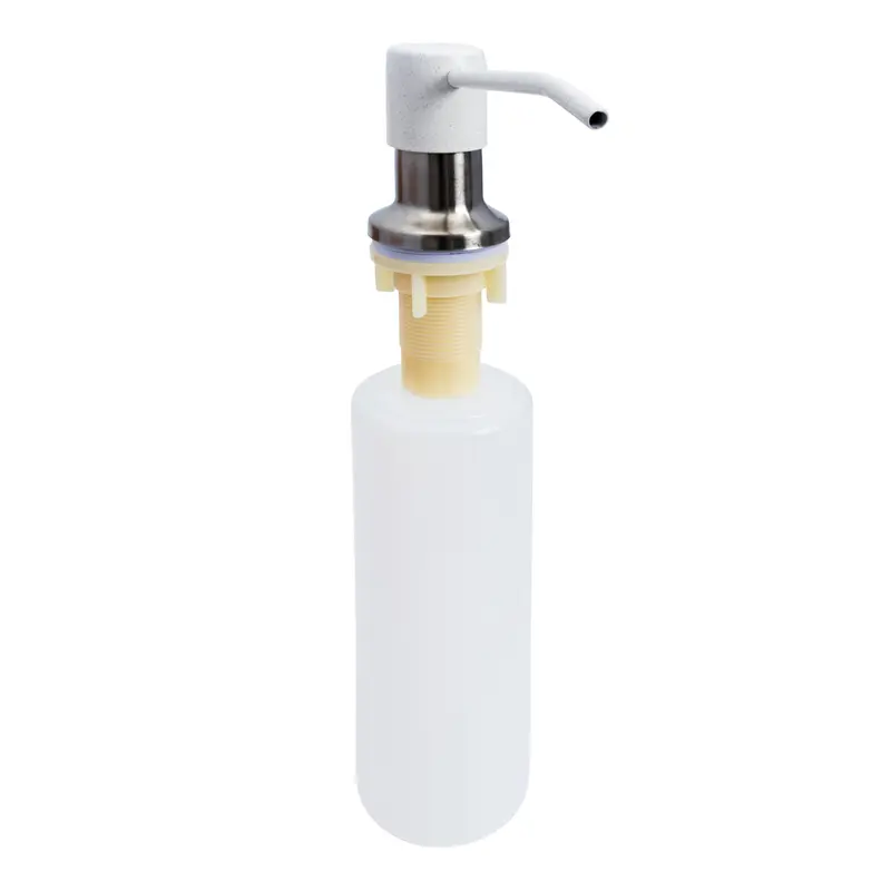 Это решение для тех, кто хочет избежать бутылок и флаконов у мойки. Врезные дозаторы монтируются непосредственно в отверстие кухонной мойки или столешницы рядом со смесителем. Их основные преимущества:
