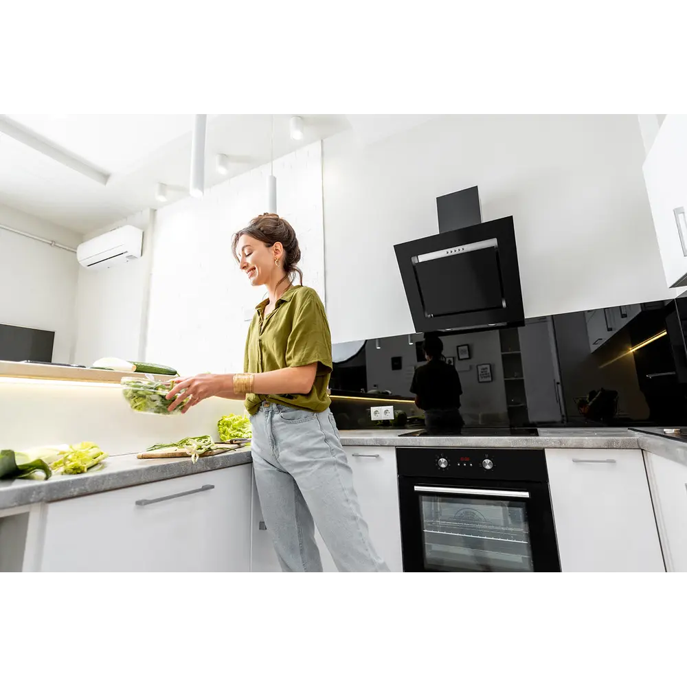 Верхній вентилятор надає руху повітря, таким чином, охолоджуючи окремі елементи корпусу і скло вироби. Цей тип блокування захищає меблі від пошкодження, а користувача обладнання від опіків. P>