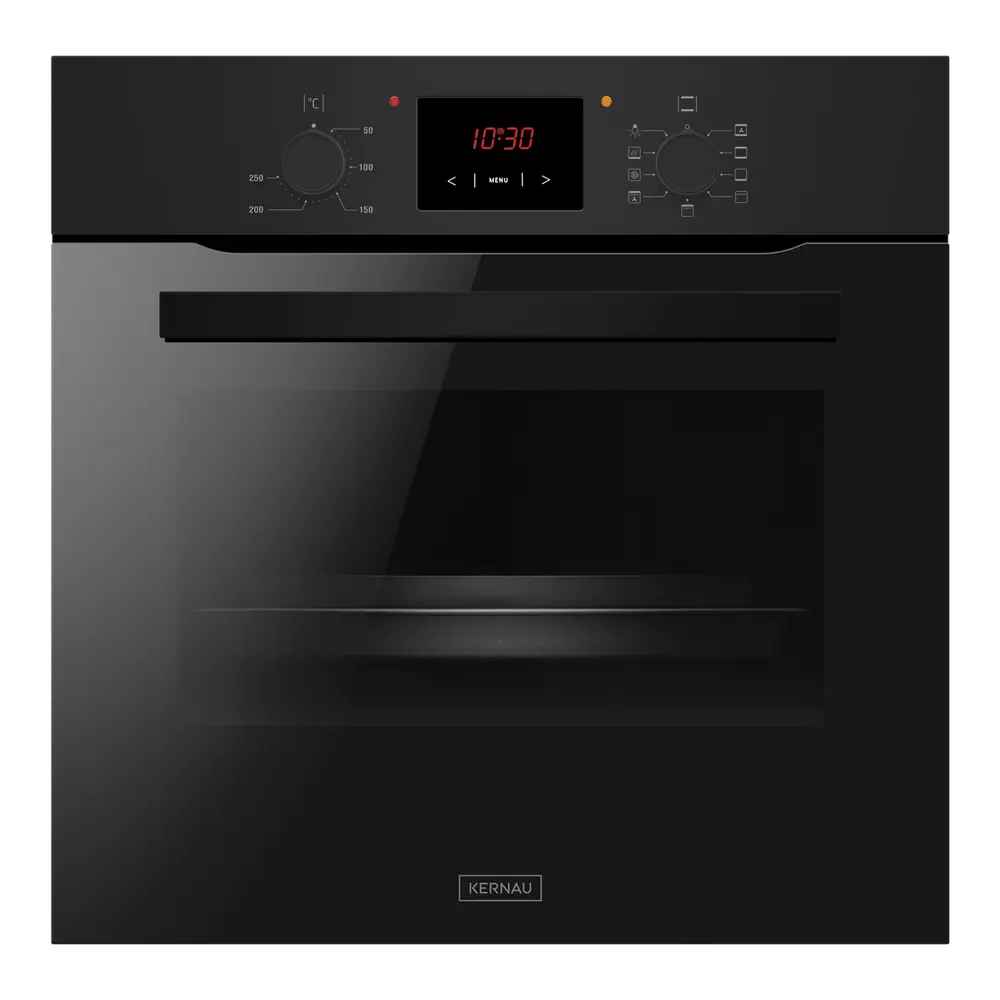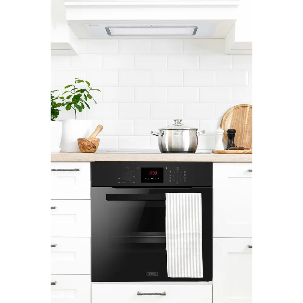 Встроенная духовка Kernau вместимостью 66 л, оснащена удобными элементами управления и 10 функций нагрева, включая функцию 3D-конвекции. 3D-конвекция характеризуется тем, что обеспечивает равномерную температуру внутри устройства. А это значит, что наши блюда будут идеально запеченные где угодно. Очистка внутренней части устройства облегчается использованием эмали Perfect Clean. Посыпанные при выпечке частицы жира труднее откладываются, чем при обычной эмали. Печь также была оборудована системой охлаждения корпуса и тройным стеклом в дверце. Это все для предотвращения случайных ожогов. Корпус остается холодным даже при длительной выпечке, так что мебель рядом с духовкой не поддается повреждению из-за чрезмерной температуры.