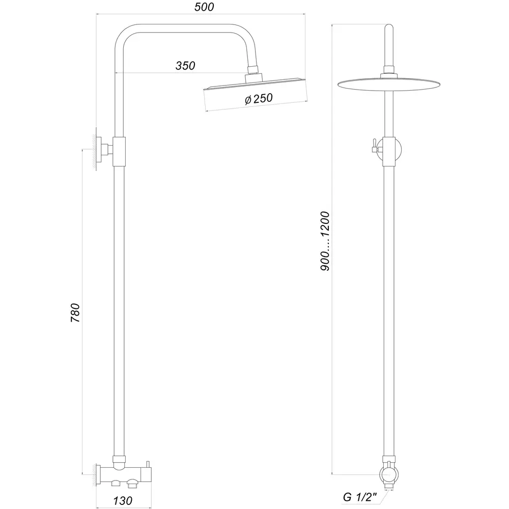 - верхний душ - круглая воронка ø25 см, стойка (85-125 см)