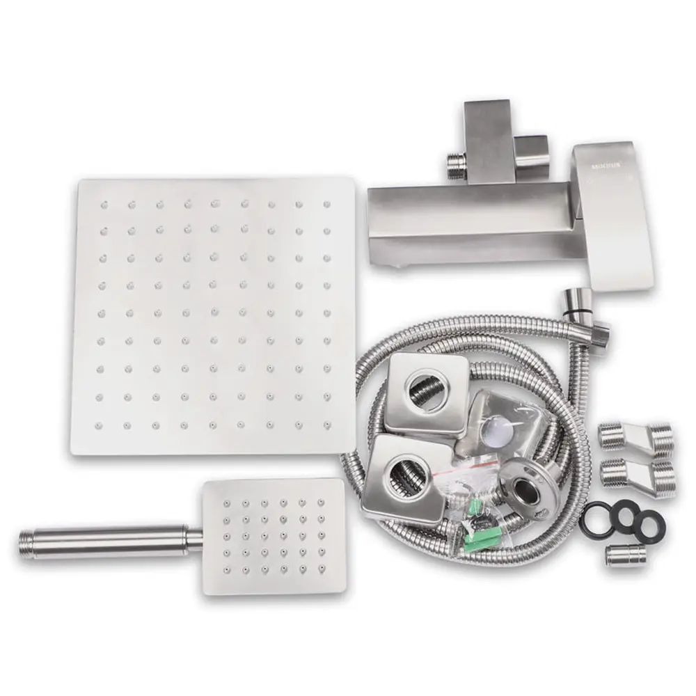Шланг 150 см, ручна лійка, стельова лійка, чашки, ексцентрики, гумові прокладки, тримач для лійки