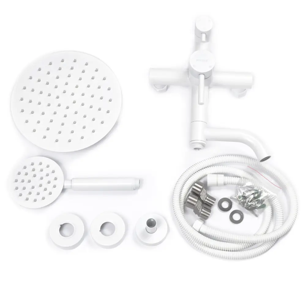 Шланг 150 см, ручна лійка, стельова лійка, чашки, ексцентрики, гумові прокладки, тримач для лійки