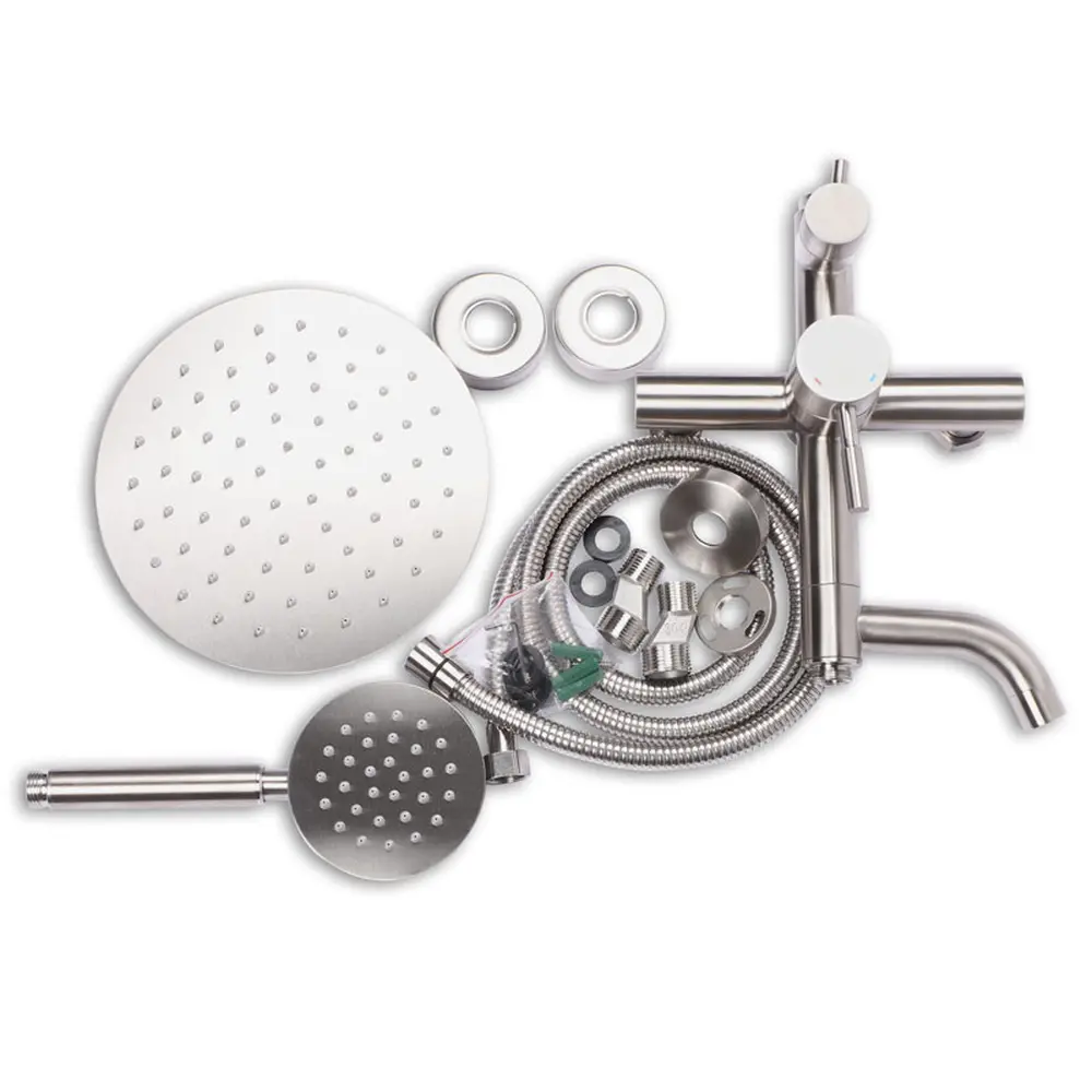 Шланг 150 см, ручна лійка, стельова лійка, чашки, ексцентрики, гумові прокладки, тримач для лійки
