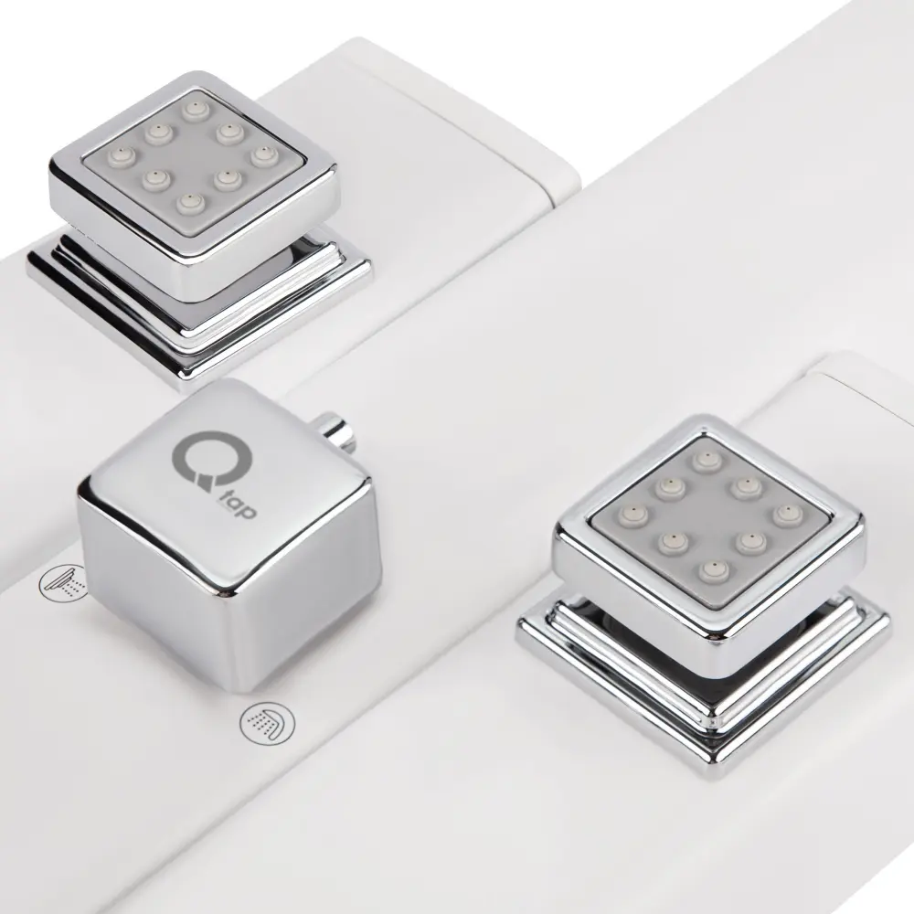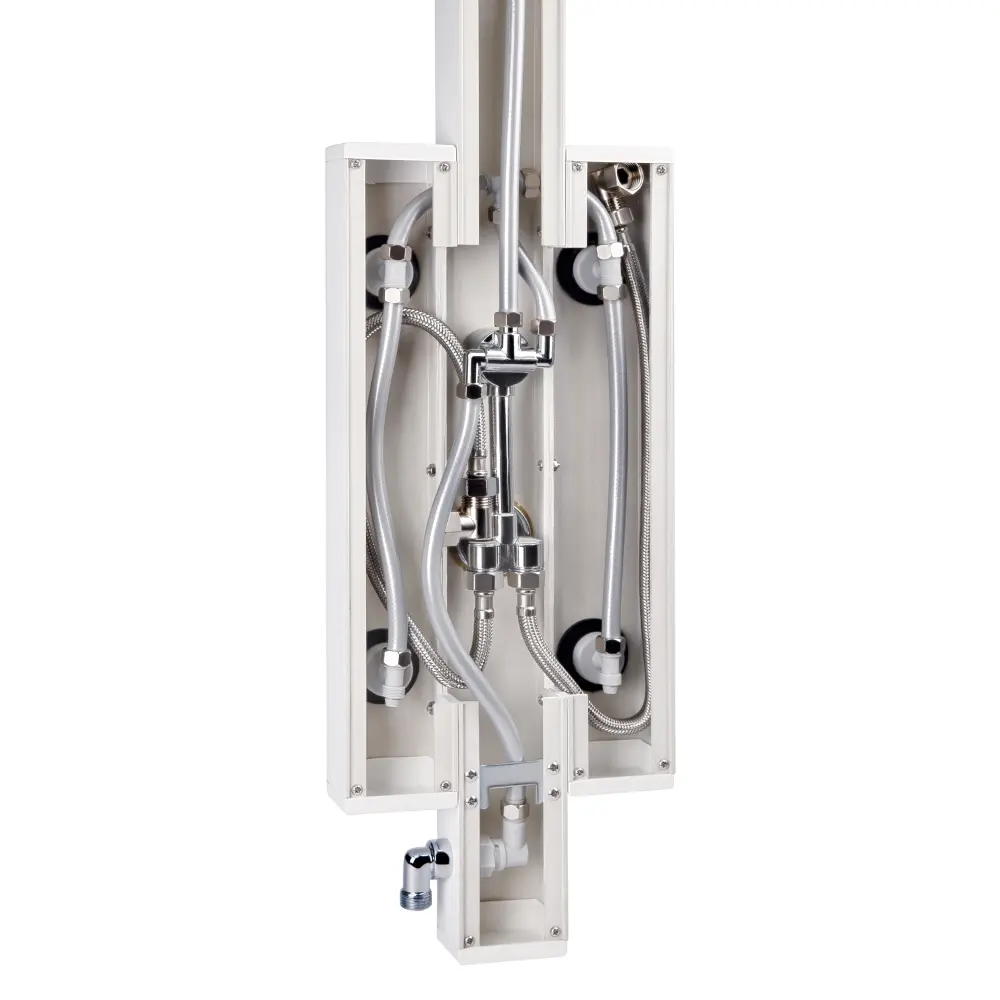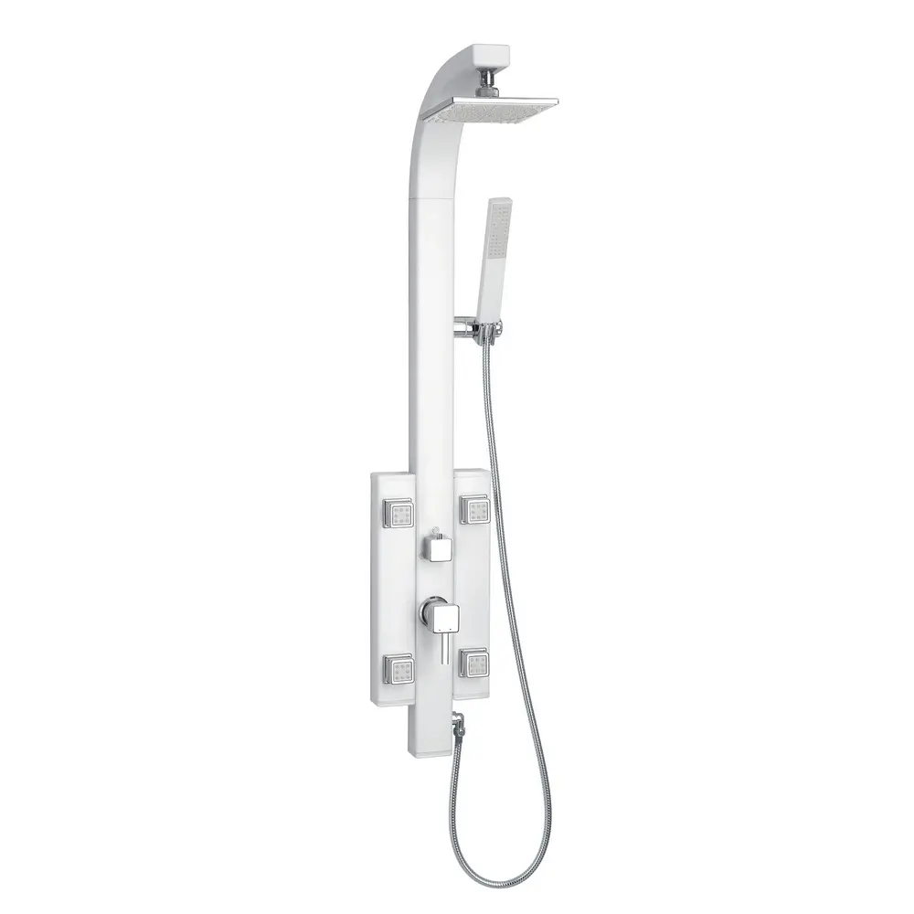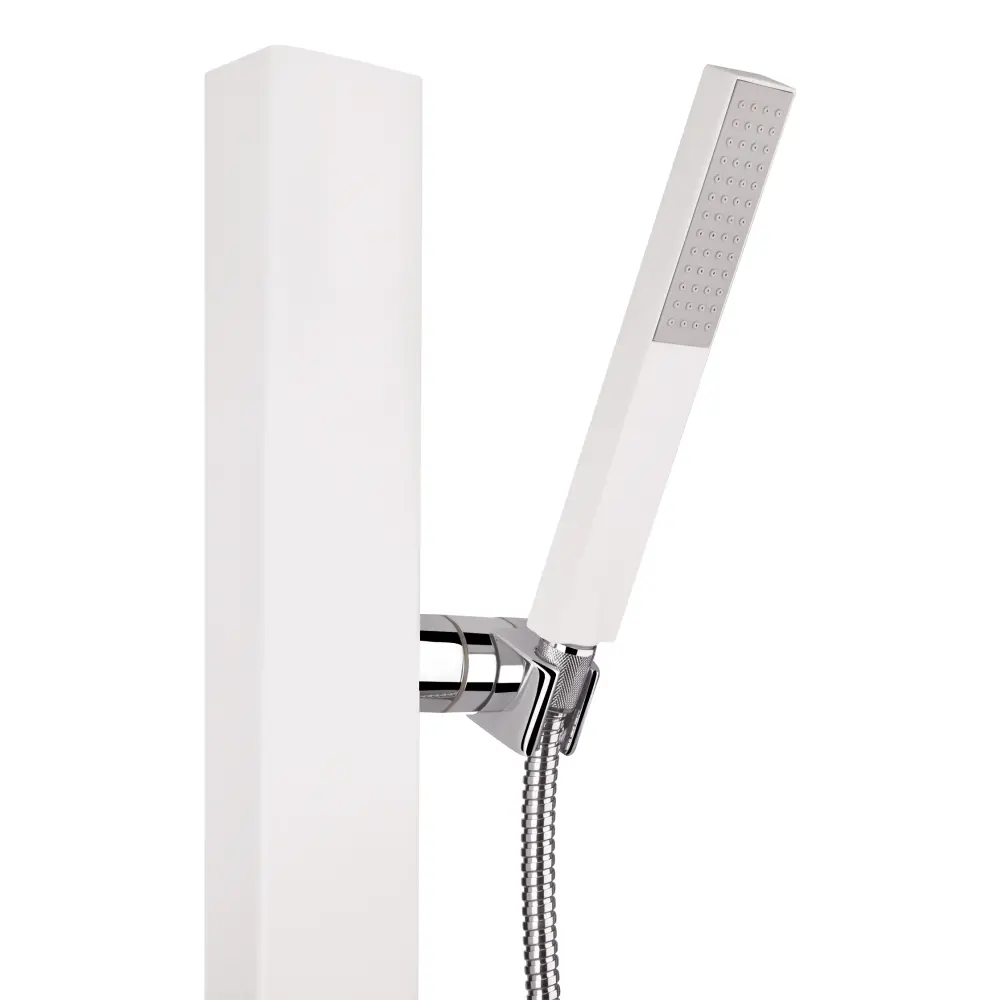 Душова панель Qtap WHI 1102 забезпечить максимально комфортний прийом душу. На панелі розміщені душові форсунки та змішувач, а також верхній душ і ручний душ. Тривалий термін служби забезпечують матеріали, з яких виготовлено виріб: міцний пластик та зносостійка, довговічна латунь, що не піддається впливу іржі.