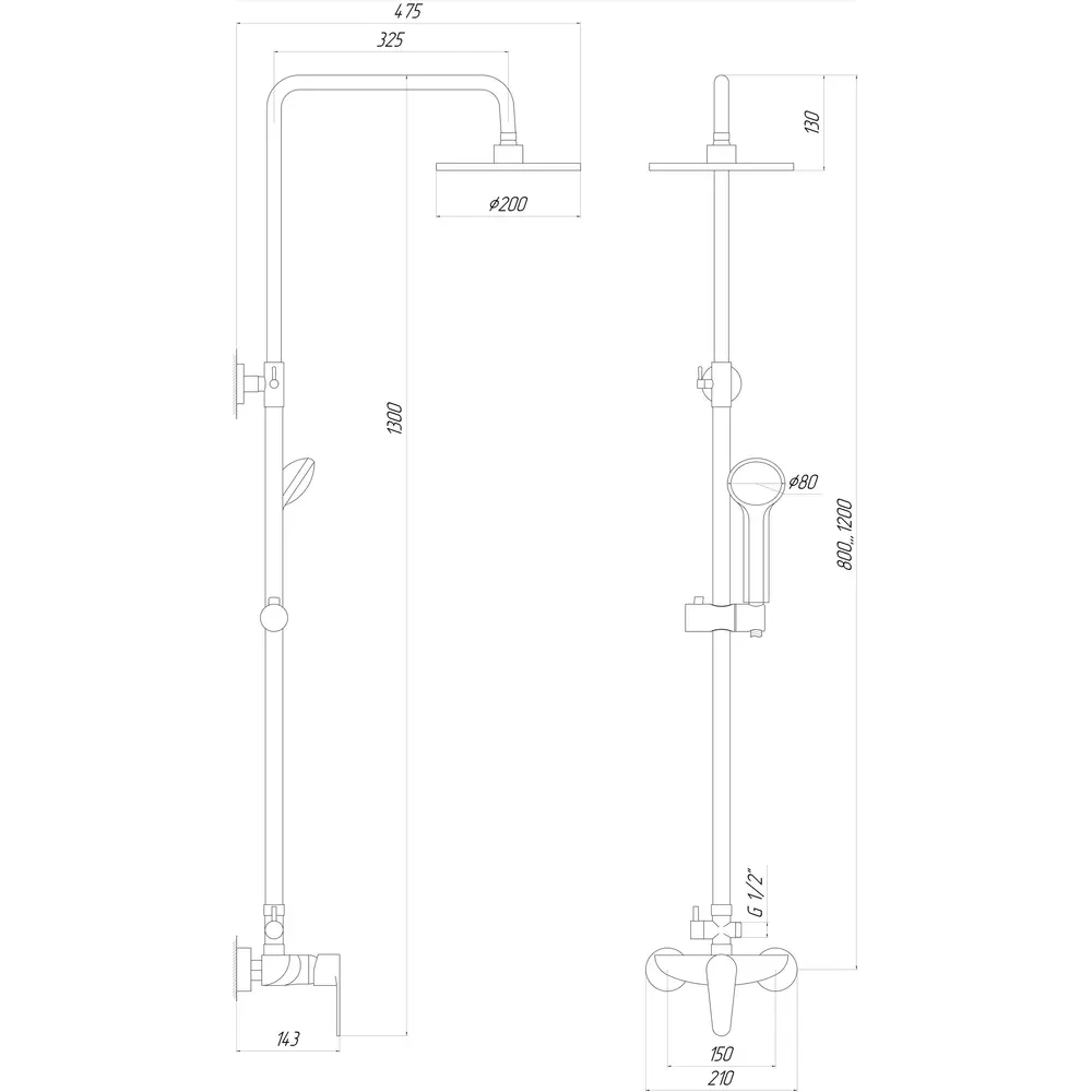 - верхний душ - круглая воронка тропик ø20 см, стойка (80-120 см )