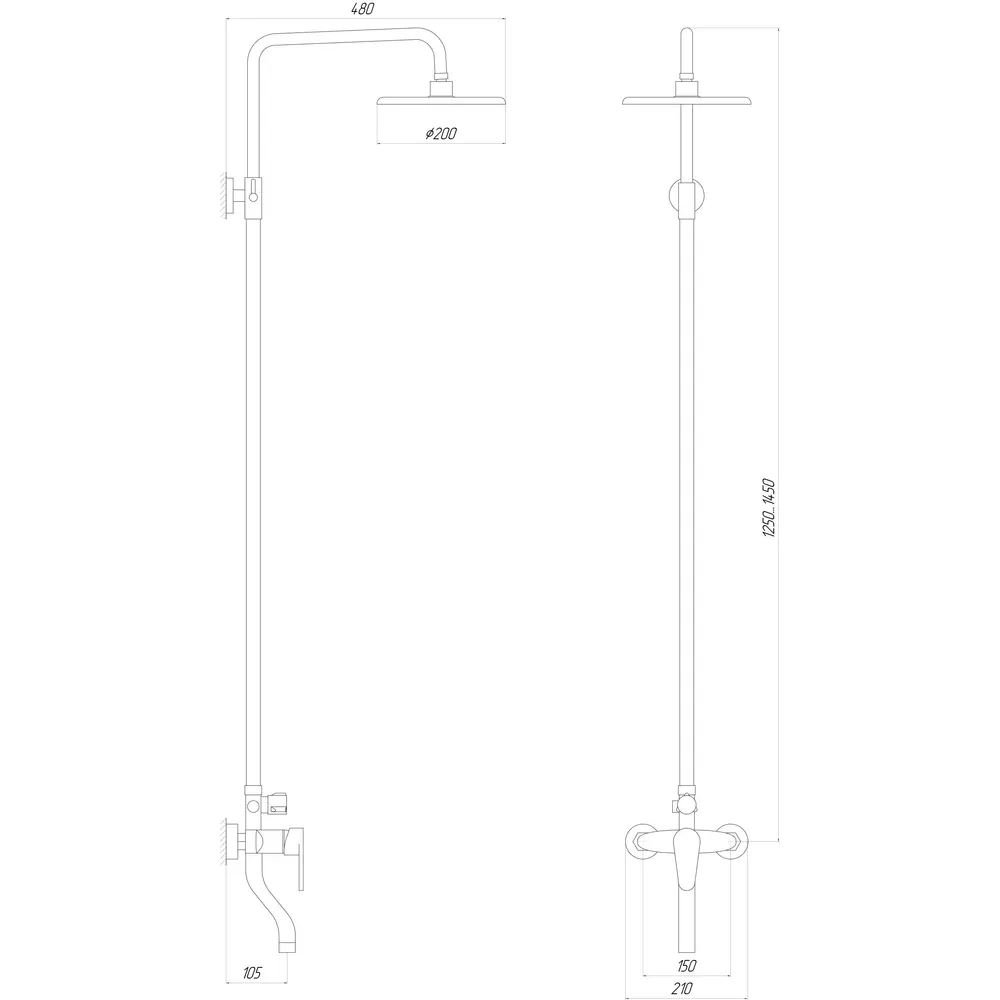 - верхний душ - круглая воронка ø 20 см, стойка (100-150 см)