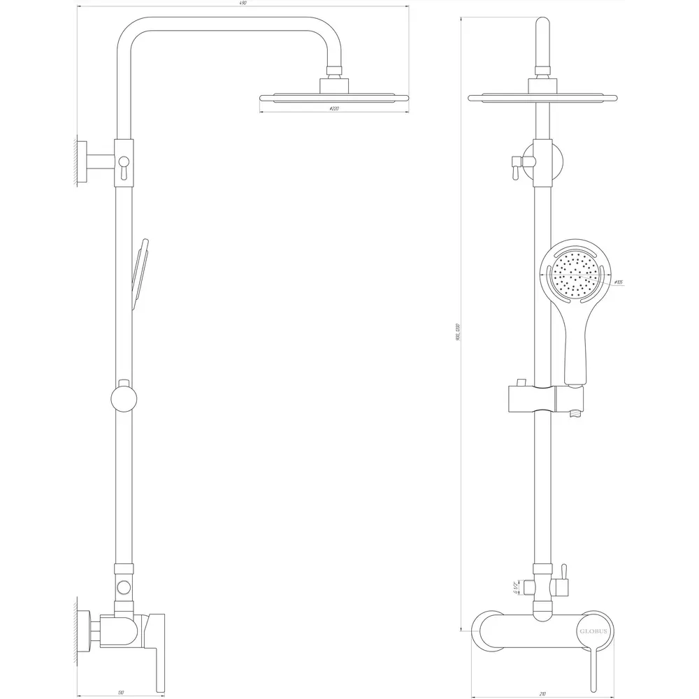 - верхний душ - круглая воронка ø 22 см, стойка (90 -120 см)