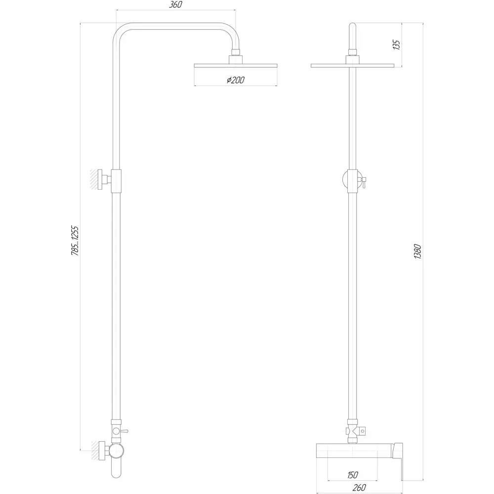 телескопическая душевая штанга (регулируемая по высоте)