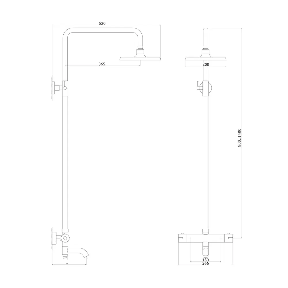 - верхний душ - квадратная воронка 20 см, стойка (80-140 см)