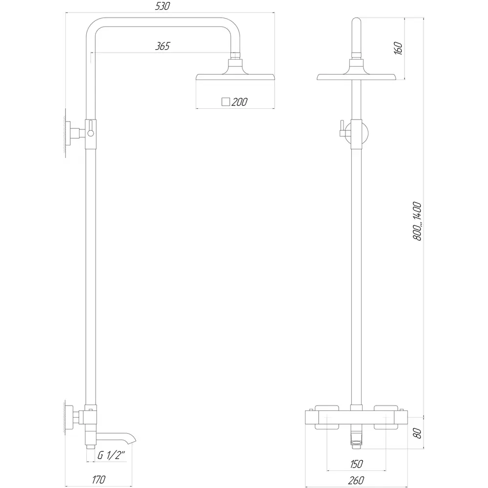 Душевая система Globus Lux GLM-0041T Termostatic с гусем