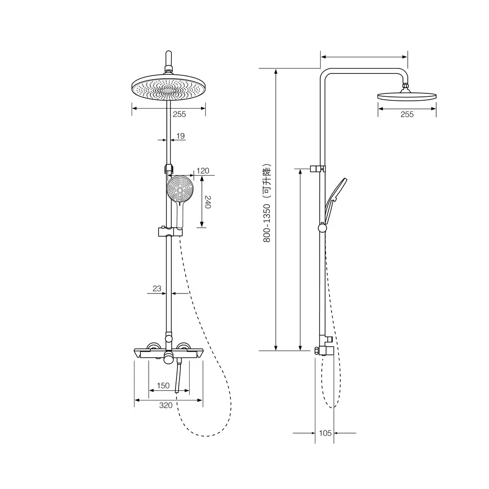 Душова система оснащена всіма можливими виливами, щоб вам не довелося нічого додавати у вашу ванну: тропічний вилив, ручний душ та вилив для набору води